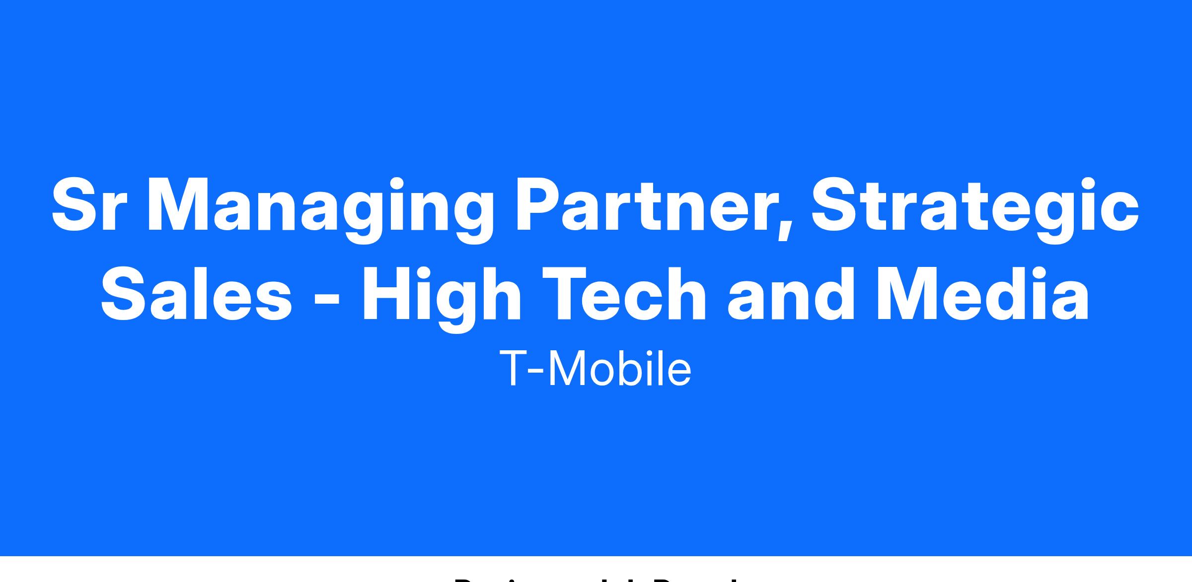 The Sr Managing Partner reports to the Director of Strategic Accounts and will lead all sales motions for a team of strategic sales professionals in the High Tech Media Vertical. The Sr Managing Partner is focused on a select number of High Tech and Media strategic accounts, accountable for developing a strategy to drive growth in revenue and number of sales across these accounts (reviewing & revising on a quarterly basis). This strategy should include planning for each available product solution NTM offers, with a focus on driving voice, data, UCC and IoT solutions using the T-Mobile network to achieve sales goals, subscriber and revenue targets, and customer retention objectives. The Sr Managing Partner is tasked with ensuring NTM is connected across the management layers of each of the accounts in the team's focus.