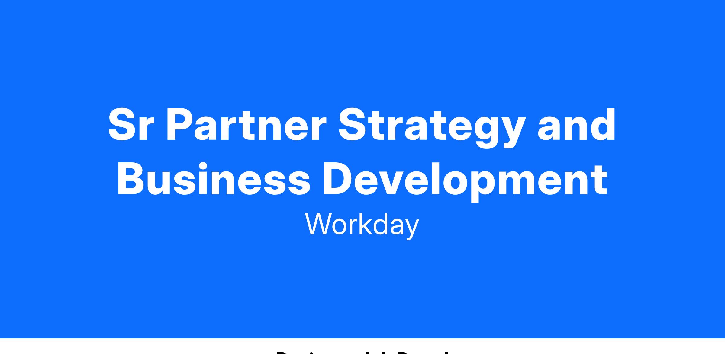 The Partner Strategy and Business Development team in the Global Partner Organization leads strategy, planning and business development for the partner business at Workday. We define and execute our strategy with leaders across the business; lead strategic partner relationships; and deliver sizable, net-new revenue growth with partners.