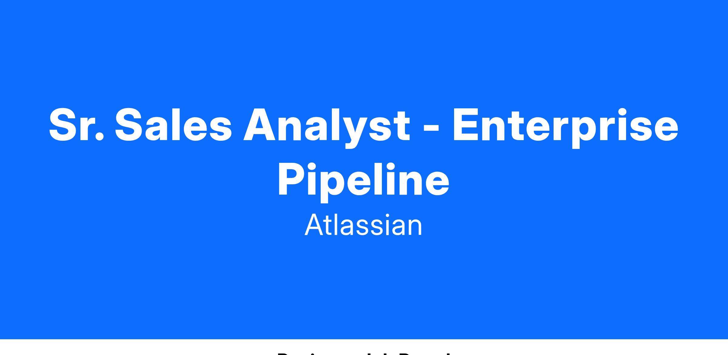 Our Pipeline Operations Management is responsible for the pipeline strategy, targets, and performance across multiple campaign sources (from MQL:SQL) to ensure future booking success. As a Sr. Analyst, Pipeline Strategy and Operations, reporting to the Sr. Manager of Pipeline Operations, you will play an important role monitoring the pipeline generation performance and providing insights for key Atlassian products.