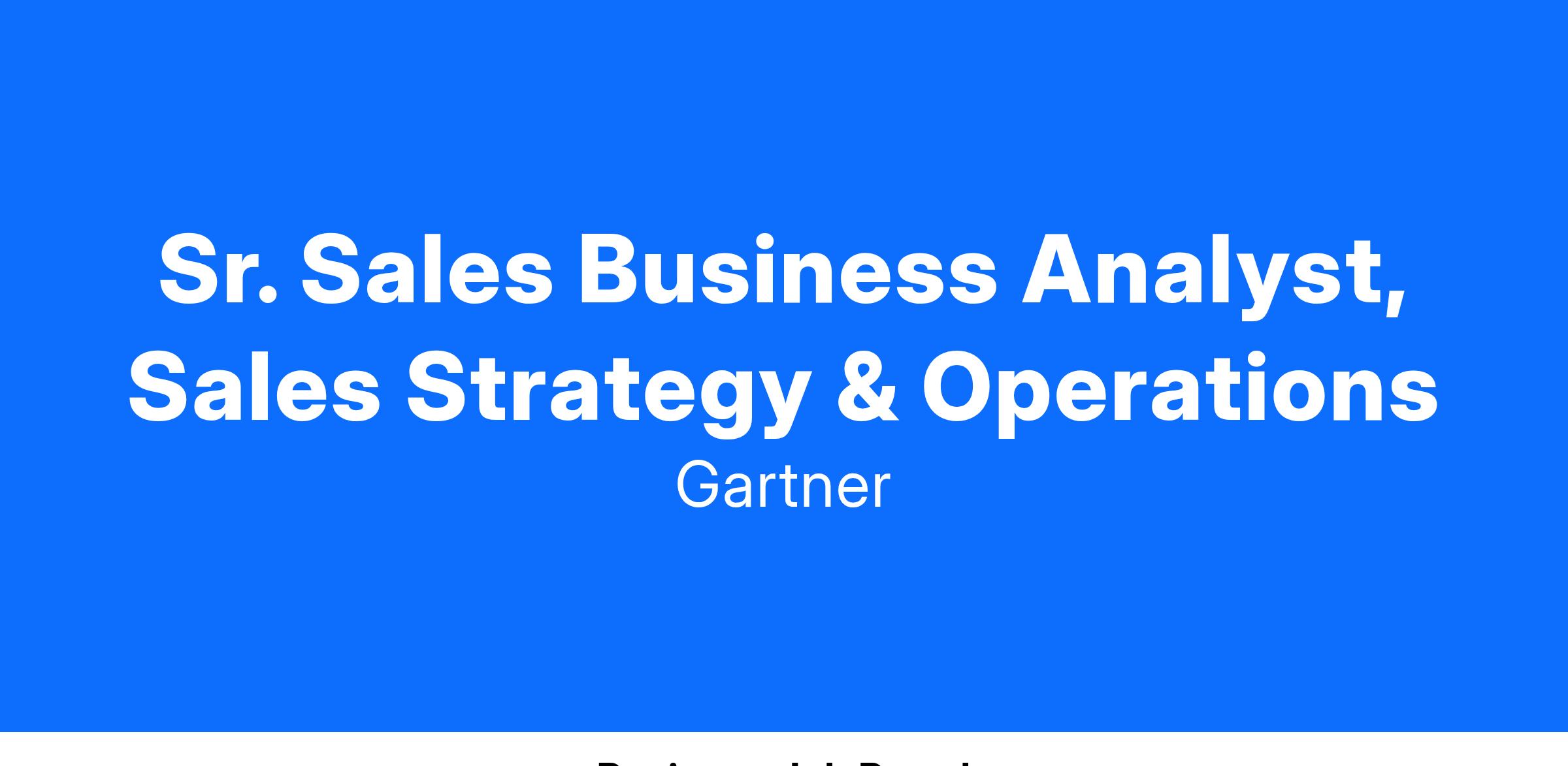 Gartner is currently recruiting for a Sr Analyst. To sustain double-digit growth and exceptional seller productivity, Gartner invests heavily in sales support resources, namely through Sales Specialists and our Sales Development Program. These programs are designed to support sales pipeline acceleration and growth, as well as preparing early career associates into world class sales professionals.