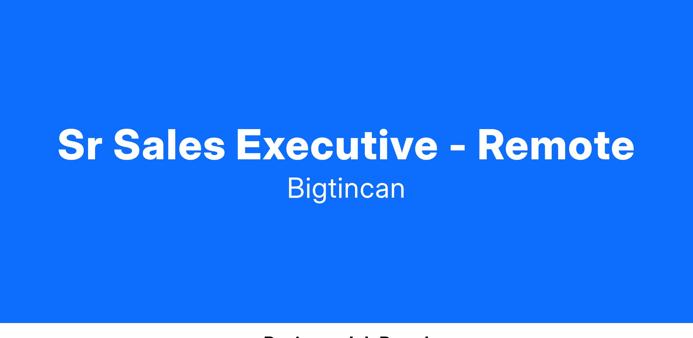 Sr Sales Executive - Remote