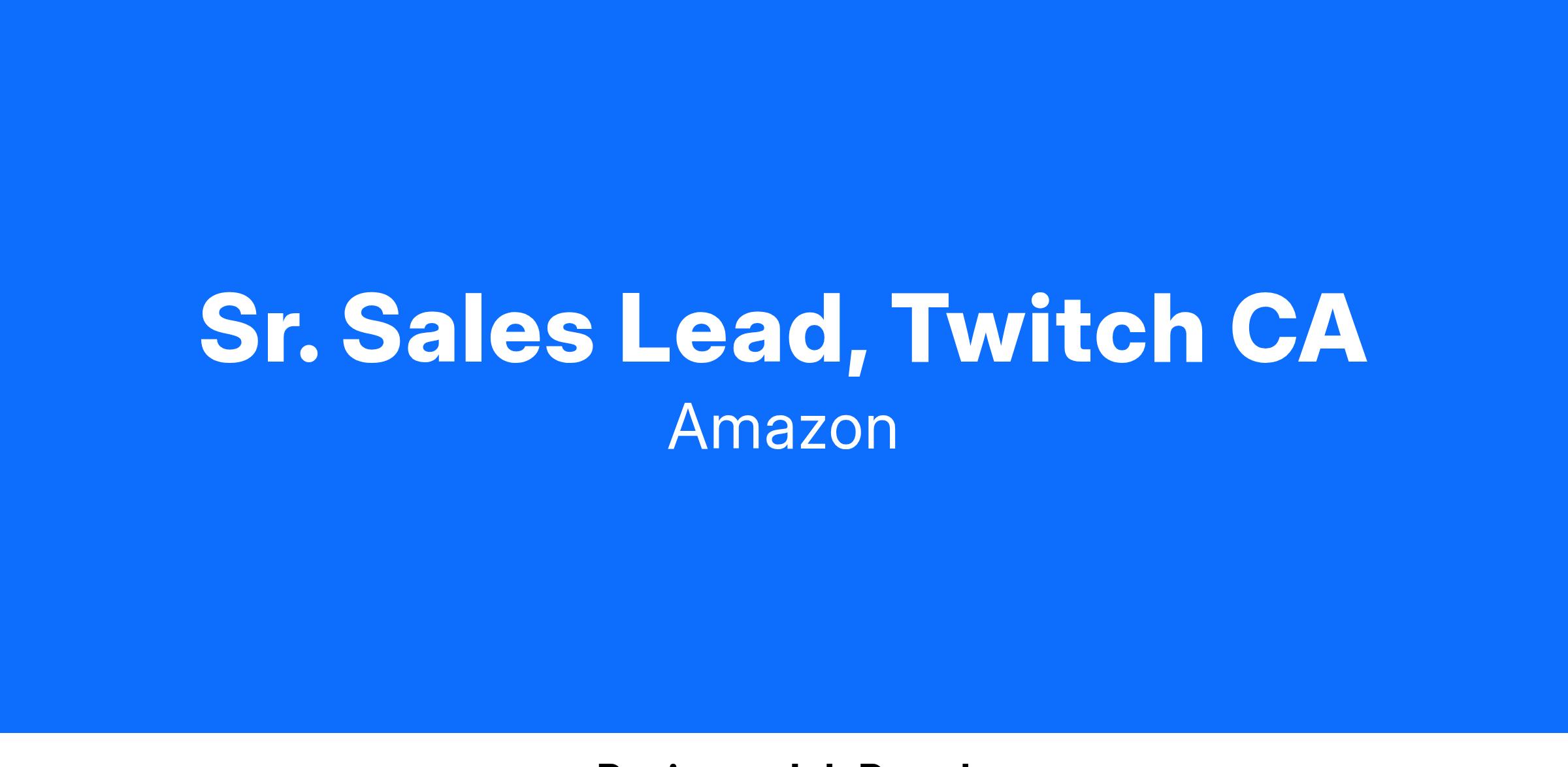 Sr. Sales Lead, Twitch CA