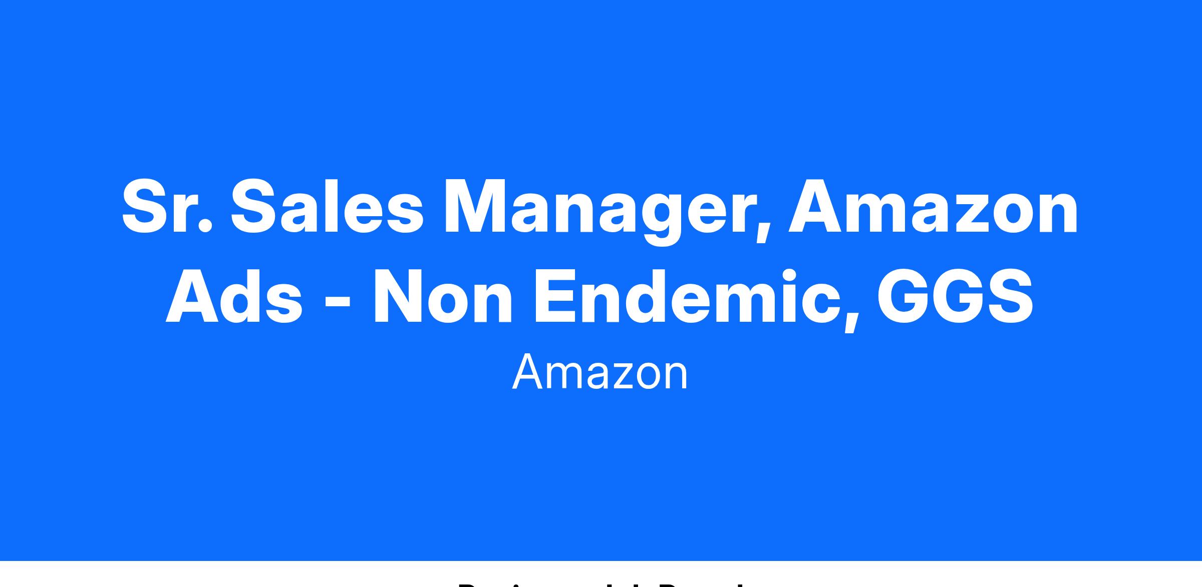 Sr. Sales Manager, Amazon Ads - Non Endemic, GGS
