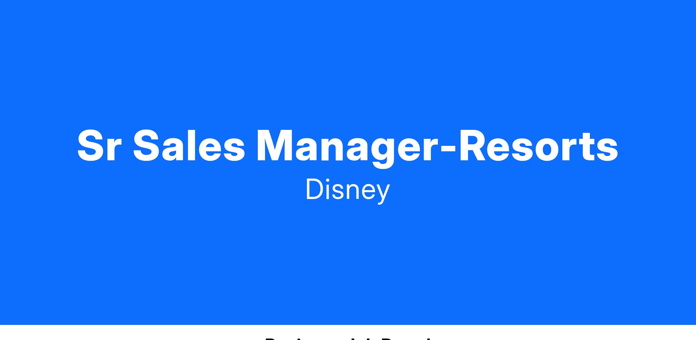 Sr Sales Manager-Resorts