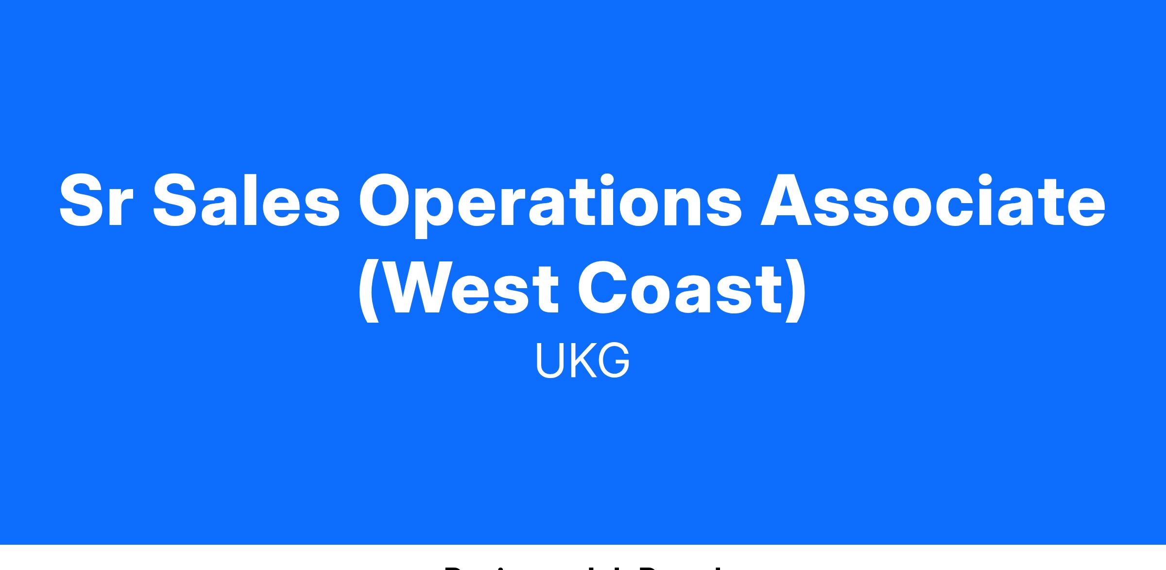 UKG is seeking a highly motivated, detail-oriented, and customer-focused professional to join the Sales Operations team. This role is an integral partner to the Sales team and consistently ensures operational excellence and efficiency.