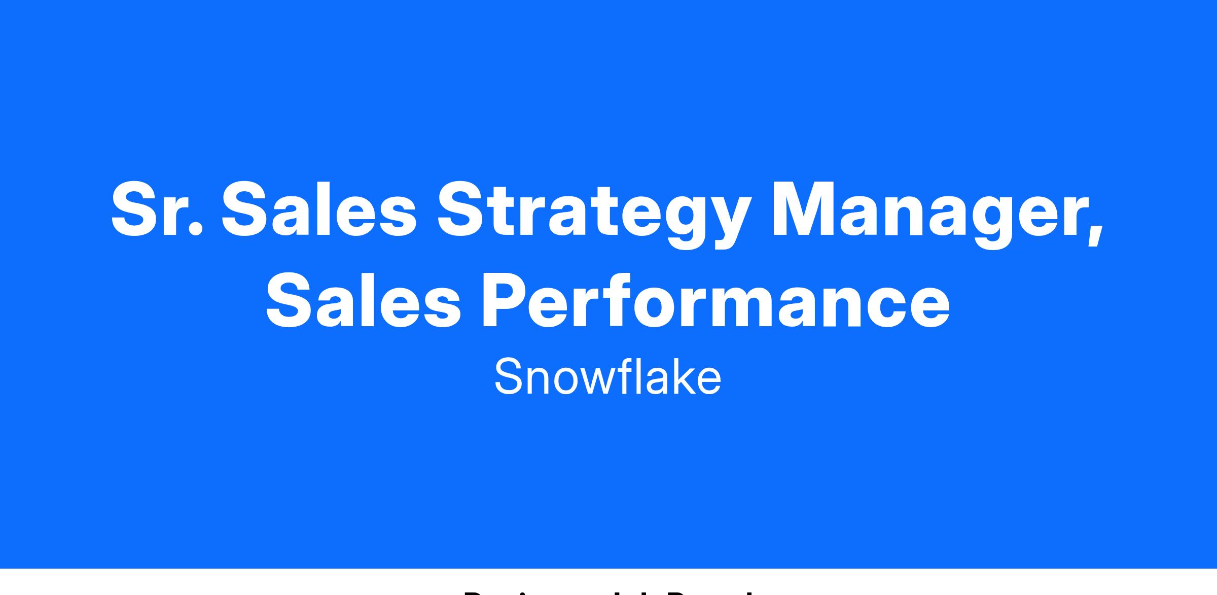 Snowflake’s Sales Strategy & Business Operations team is seeking a Sr Sales Strategy Manager, Sales Performance to help define and drive the company’s go-to-market strategy and operating plan. Our goal is to expand Snowflake’s addressable market and improve market penetration through targeted investments.