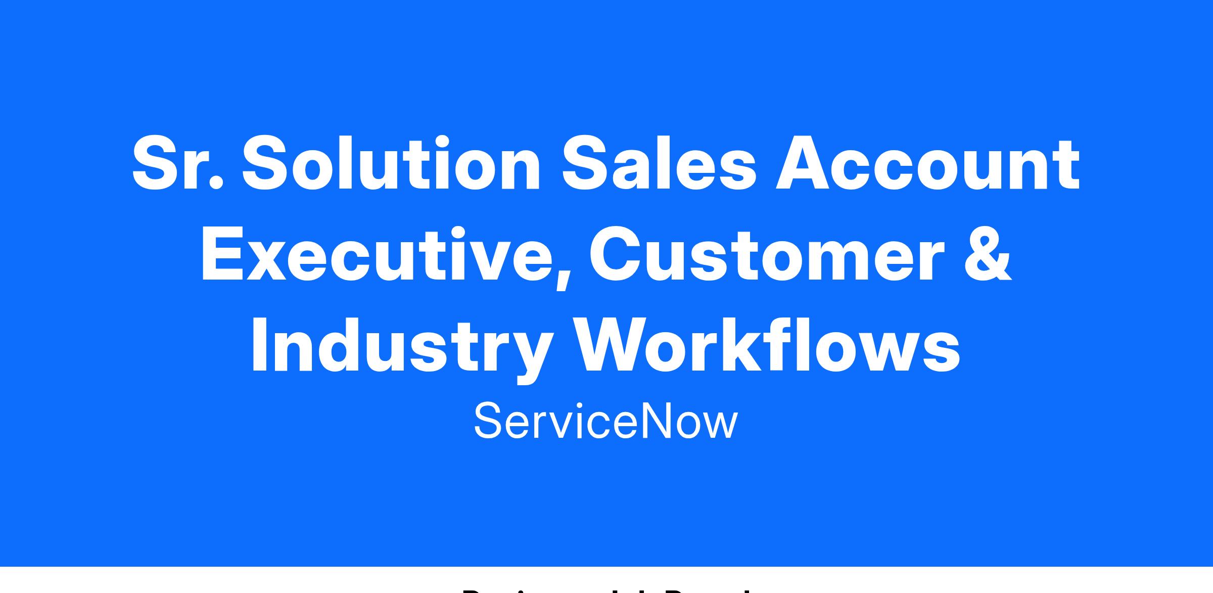 The Solution Sales Executive will oversee market success of ServiceNow's Customer & Industry Workflows products, inclusive of CIWF multi-workflow solutions (as prescribed). You will play a leading role in engaging assigned accounts and be responsible for the creation of new business and pipeline across a substantial portion of the ServiceNow sales cycle and methodology. You will oversee executive relationship management for assigned accounts; lead and partner with virtual teams, including Core Field, Solution Sales, Solution Consulting, Support and Professional Services.