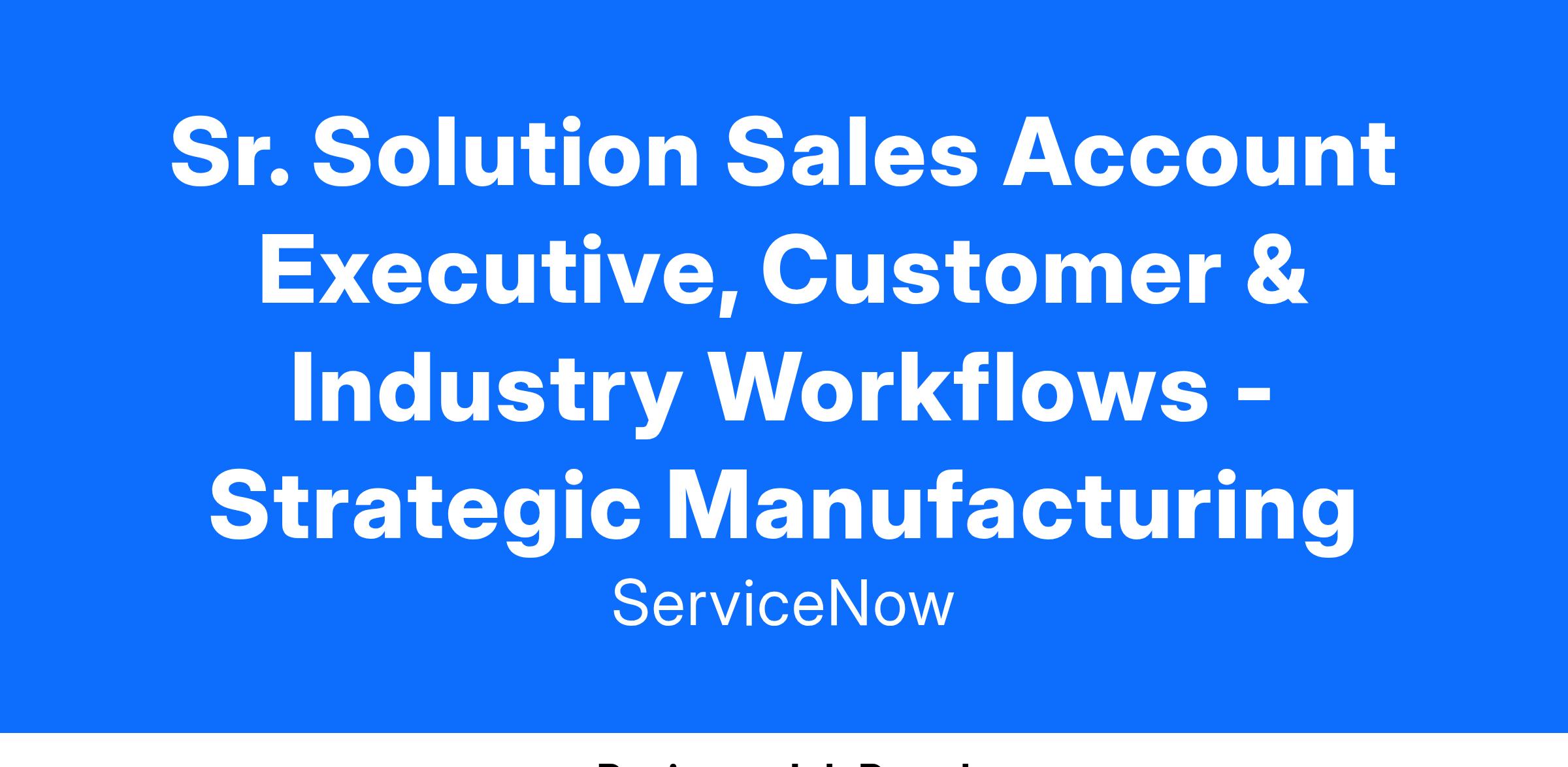 Sr. Solution Sales Account Executive, Customer & Industry Workflows - Strategic Manufacturing