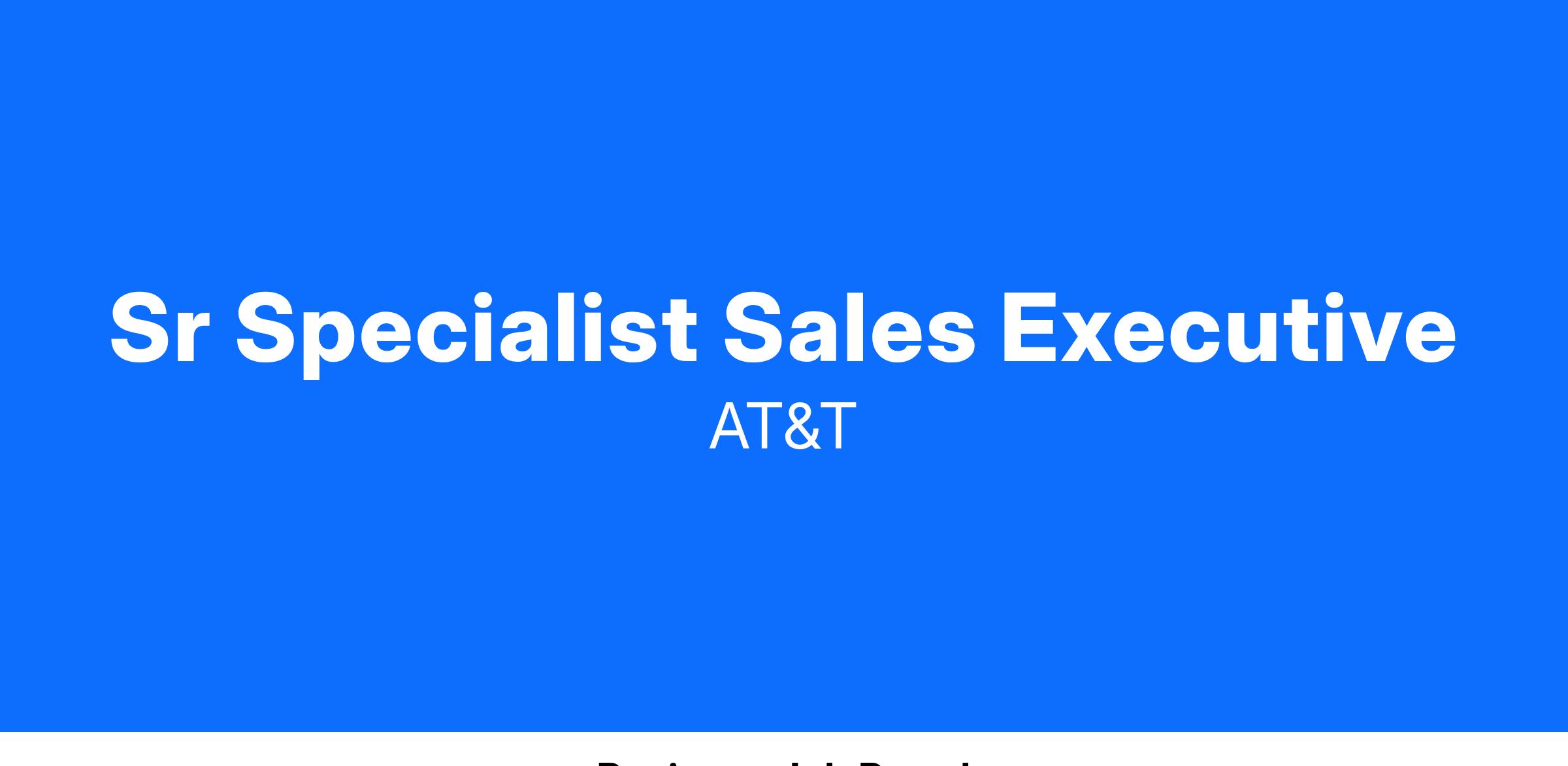 Our Sr Specialist Sales Executive, earn a base salary between $61,700 - $92,500 + commission with a total target compensation of $116,700 - $147,500 if all sales goals are met). Not to mention all the other amazing rewards that working at AT&T offers. From health insurance to tuition reimbursement and paid time off to discounts on products and services just to name a few. There is a lot to be excited about around here. Individual starting salary within this range may depend on geography, experience, expertise, and education/training.