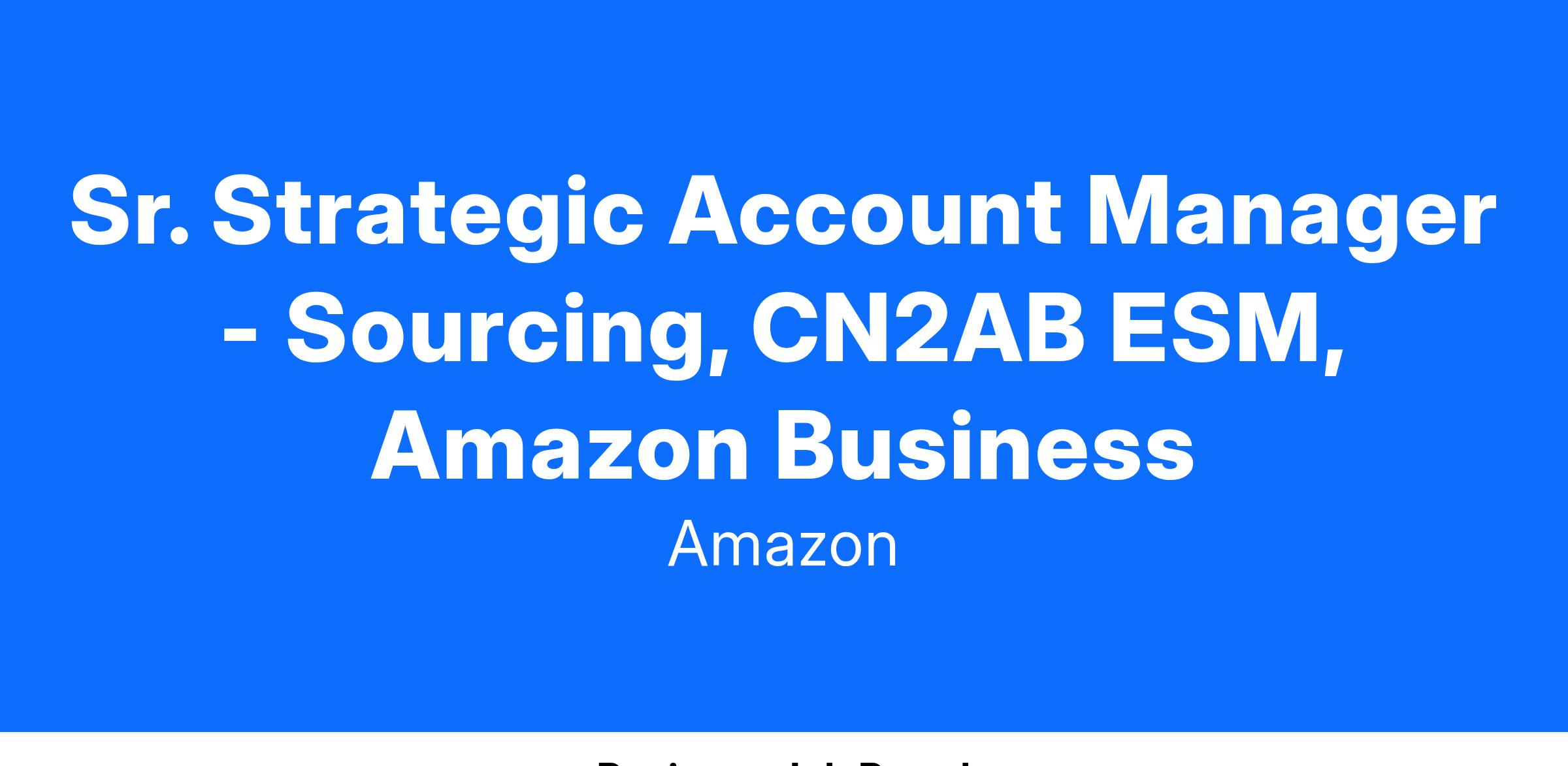 We are looking for a passionate, innovative and results-driven industry expert with strategic account management experience to support China-based sellers’ sourcing needs. This role will collaborate with other existing Seller management team, product team and destination country team to manage Sellers' end-to-end sourcing journey, utilize Amazon's suite of products/services to deliver new selection growth and cost saving for them.