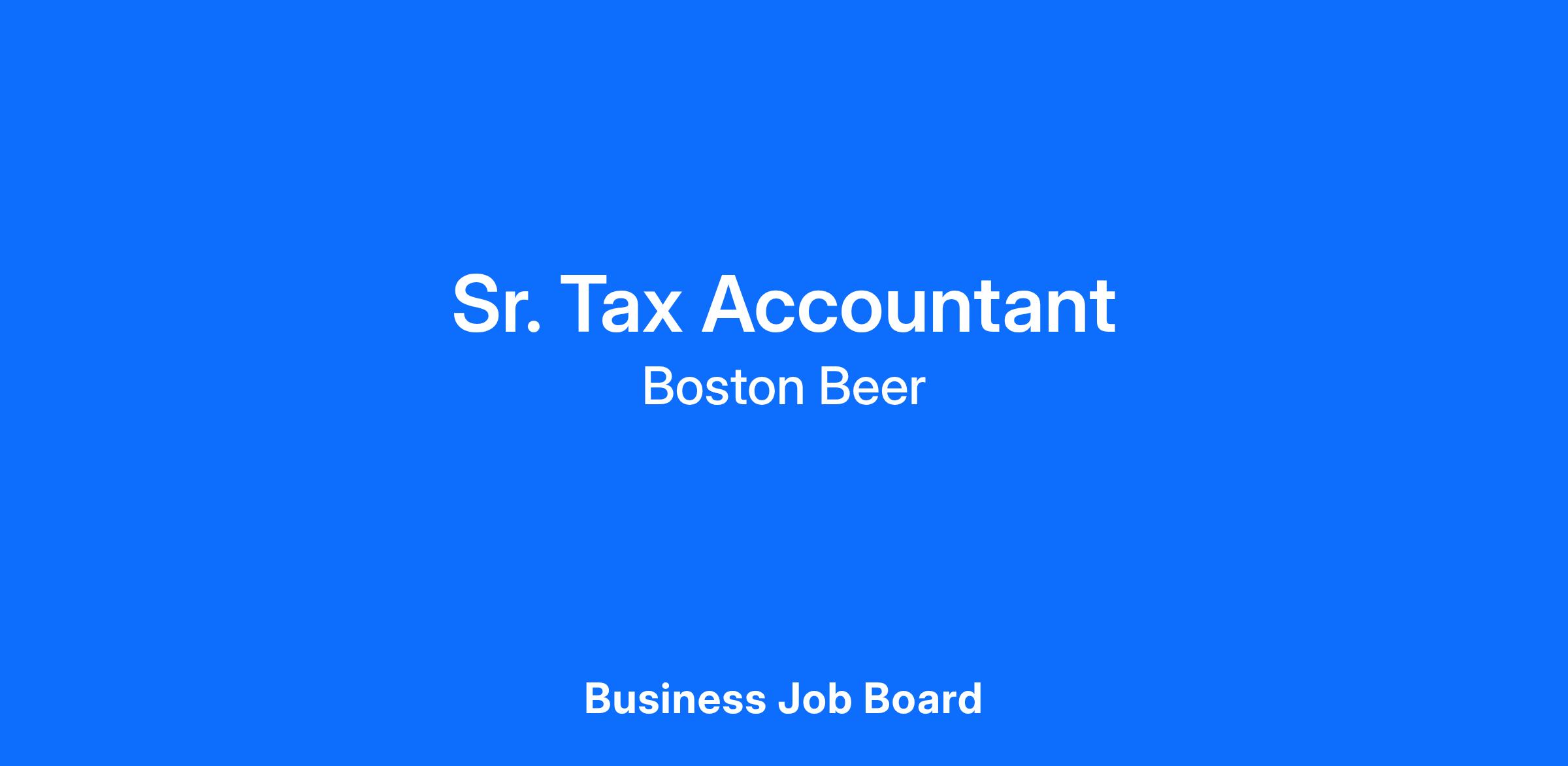 The Sr. Tax Accountant plays a crucial part in the execution of Boston Beer’s tax compliance, accounting, and planning efforts. The Sr. Tax Accountant will report to the Sr. Tax Manager and be responsible for the preparation of the federal and state income tax returns, quarterly and annual income tax accounting workpapers, and assist in other ad hoc projects.