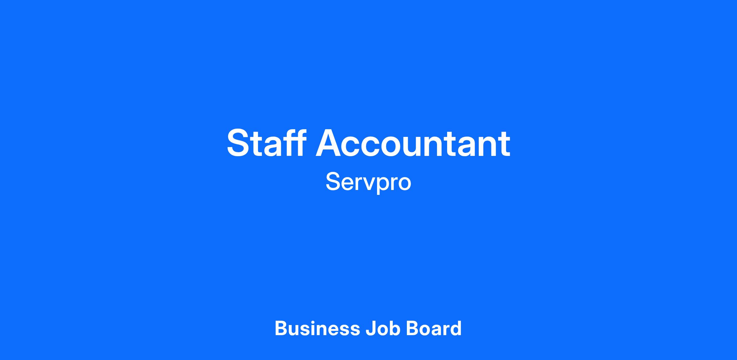 Join the dynamic team at SERVPRO of Douglasville/Carrollton/Troup-Coweta Counties as a Staff Accountant! In this pivotal role, you will play a key part in managing financial records and ensuring accuracy in our accounting processes, supporting our mission to help communities recover from disasters.