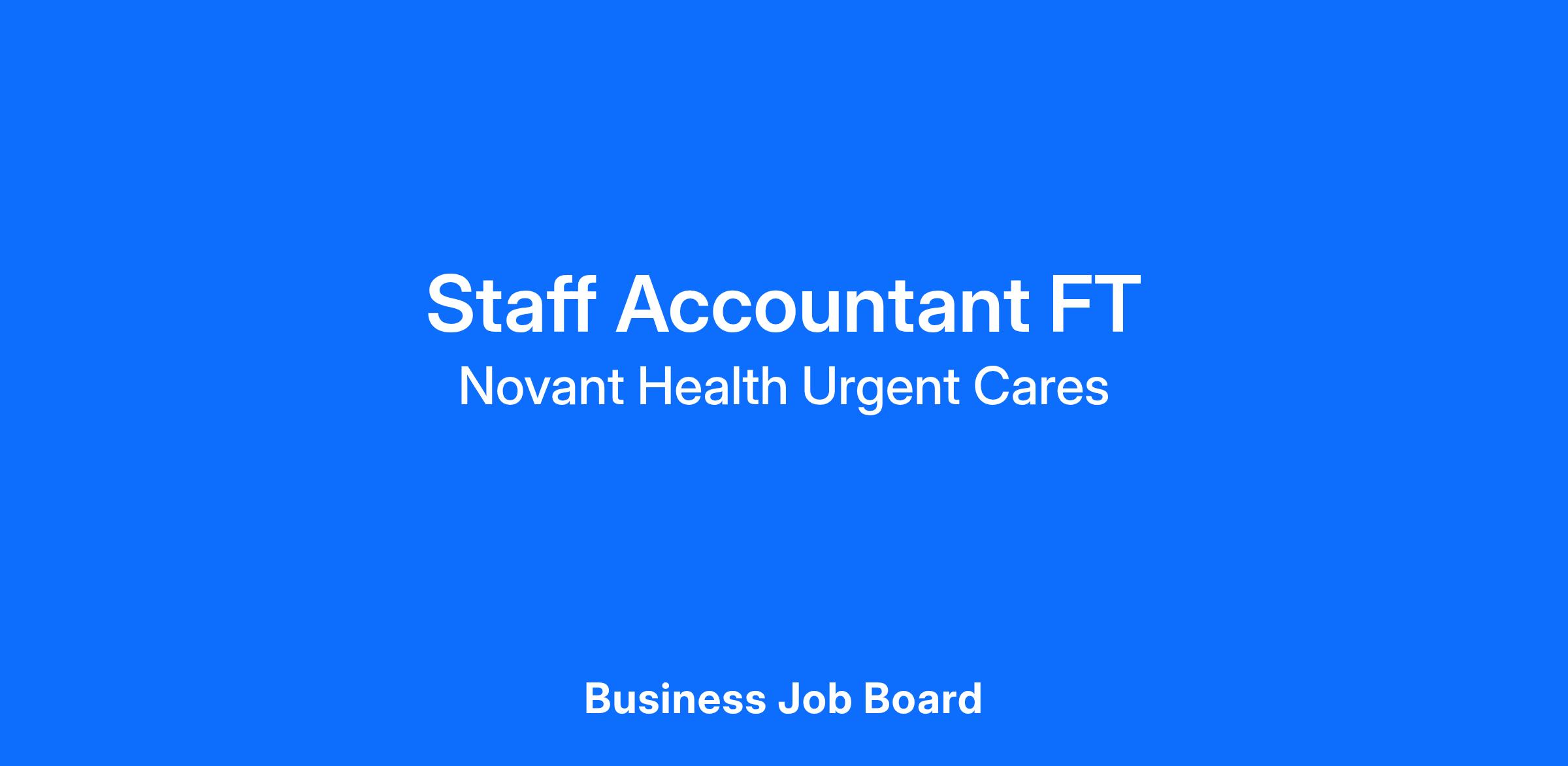 Novant Health Urgent Care is currently looking for a Staff Accountant to join our team. The Staff Accountant provides professional accounting support to a variety of financial functions for the company, including preparation of month end close journal entries, performing cash and other account reconciliations and various other special projects.