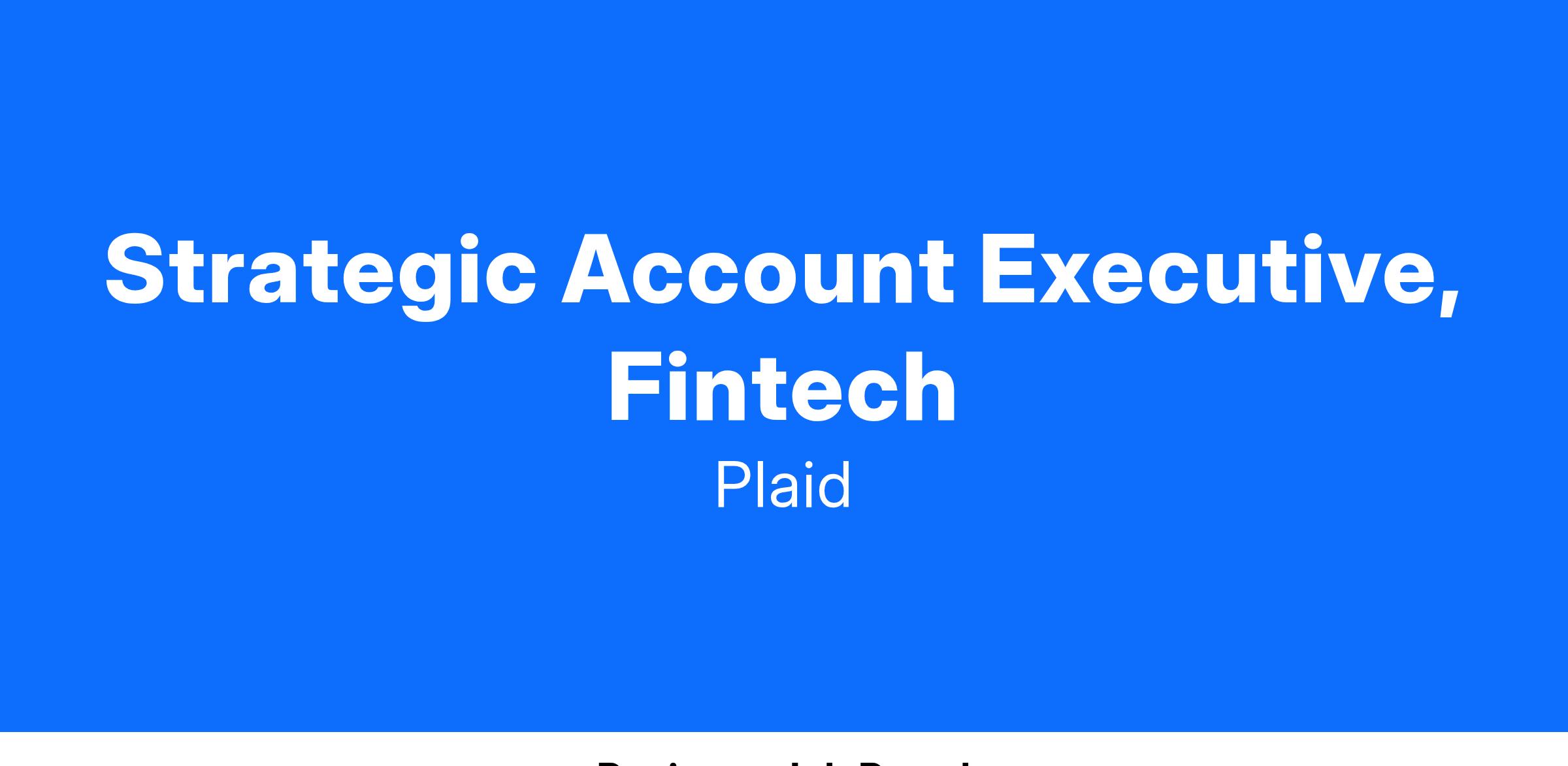 Your focus will be on working with Plaid's existing Fintech customers, deeply understanding their business, and aligning our solutions to help them achieve both near and long-term goals. You'll also be tasked with engaging Fintechs that don't currently work with Plaid, identifying opportunities to partner, and owning the end-to-end sales process.