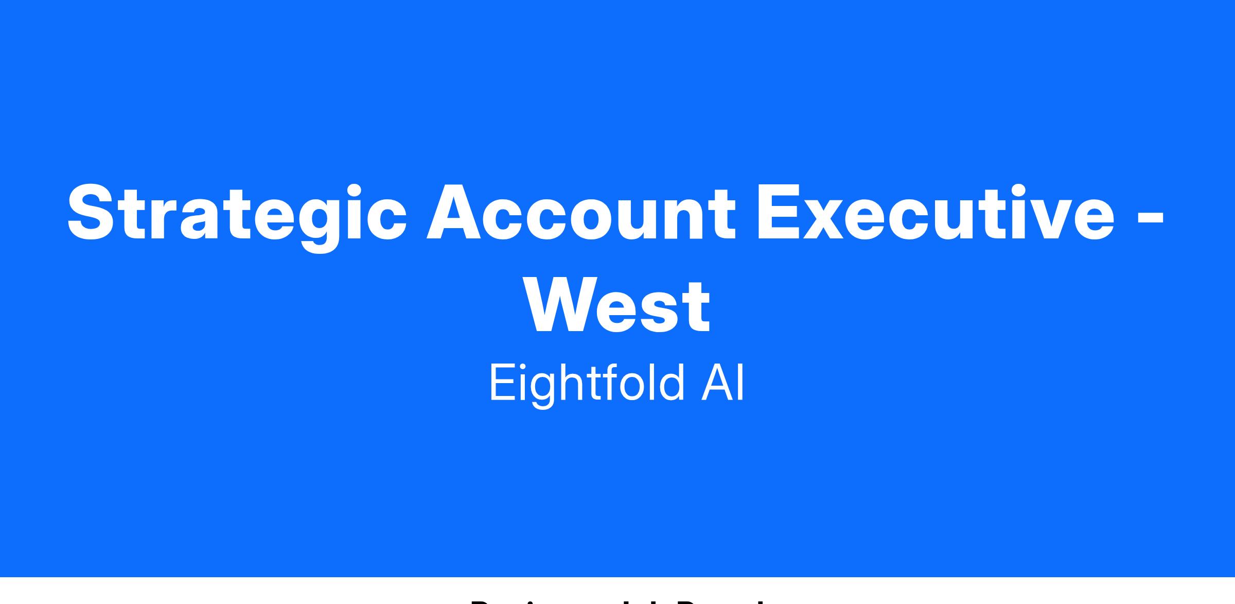 We are looking for a Strategic Account Executive. The ideal candidate is able to create and drive qualified opportunities into net new strategic accounts. This person has the ability to educate clients on our vision and tailoring it to our customer's strategic initiatives. We are looking for a motivated and experienced sales professional who is a self-starter and able to expand the Eightfold client base by working within the sales team and with sales engineering and our implementation and technology partners.