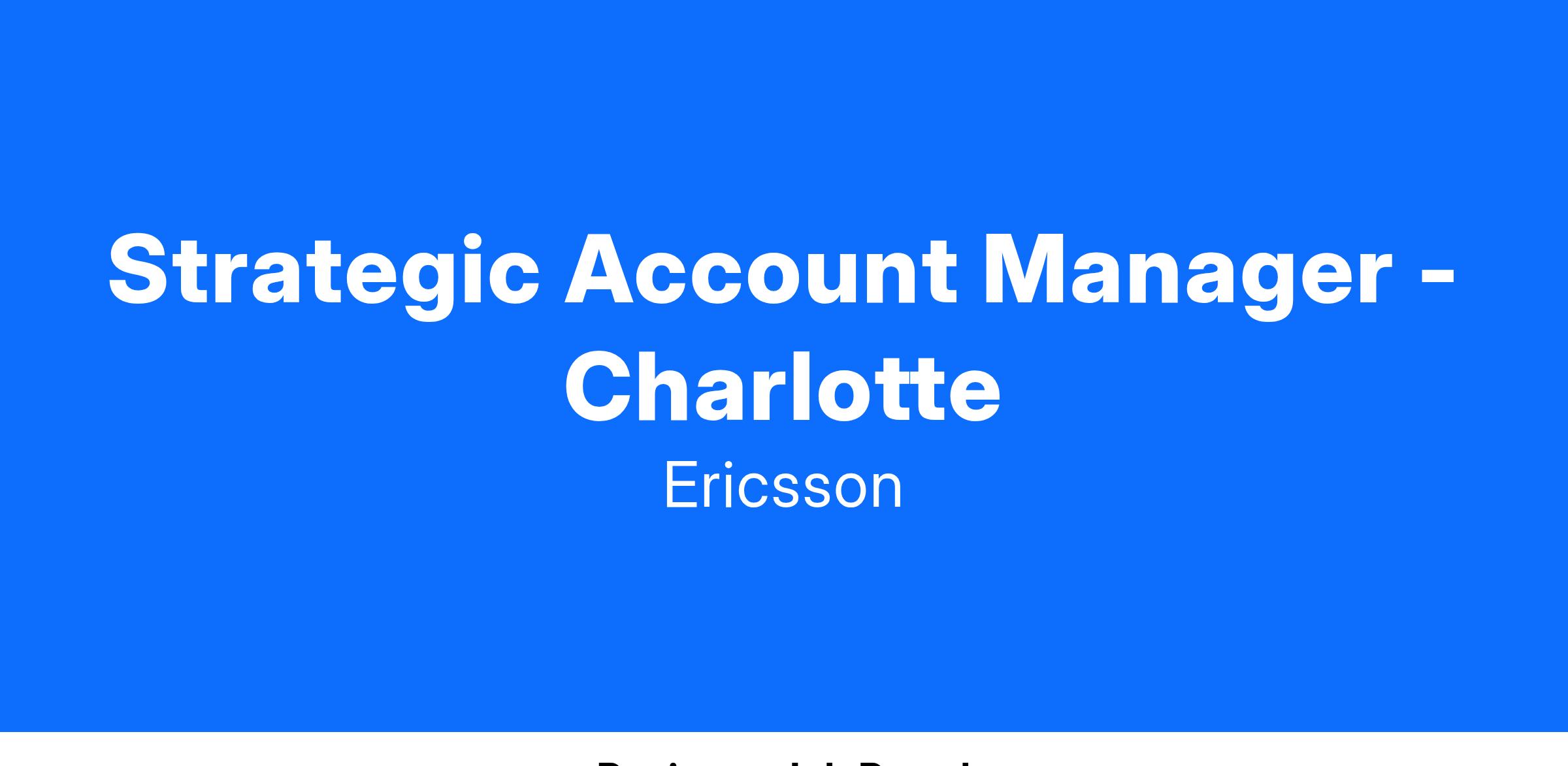 Location Expectations: This is a remote opportunity within the Southeast Territory, preferably Charlotte, NC, but would consider other markets between Atlanta and Washington DC. The candidate must currently reside in respective region.