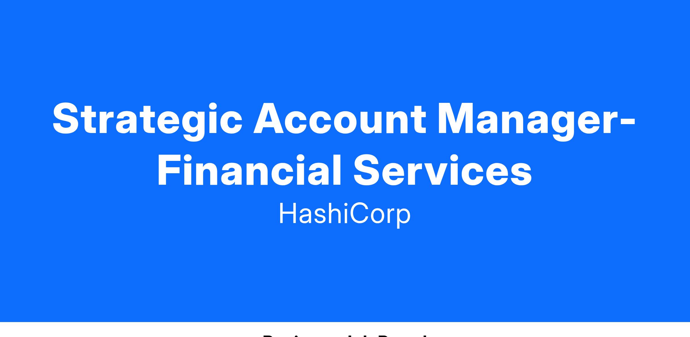 Strategic Account Manager is an outside sales position responsible for developing, managing, and closing business within Strategic Enterprise Accounts in our strategic accounts segment. The role is responsible for driving the sales cycle from prospect to close, selling the complete HashiCorp software suite to named key accounts and ensuring adoption and consumption of our solutions!
