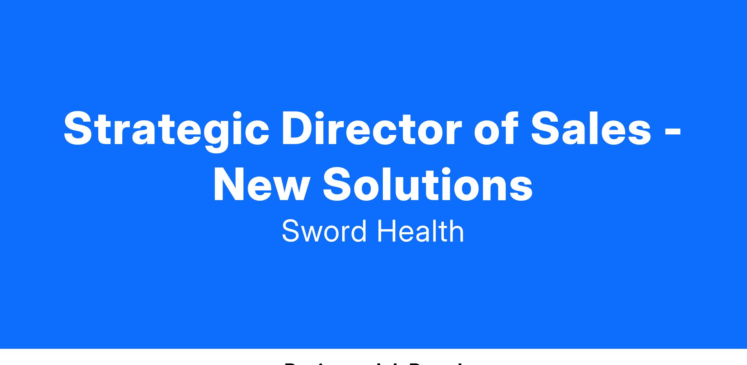 The Director of Sales for our new, innovative employee benefit will be a dynamic, hands-on entrepreneurial leader who is not afraid to roll up their sleeves and personally drive sales from day one in a "startup within a startup" environment. This is a unique opportunity to "co-found" a new innovative benefit within Sword Health and lead everything commercial from day one.