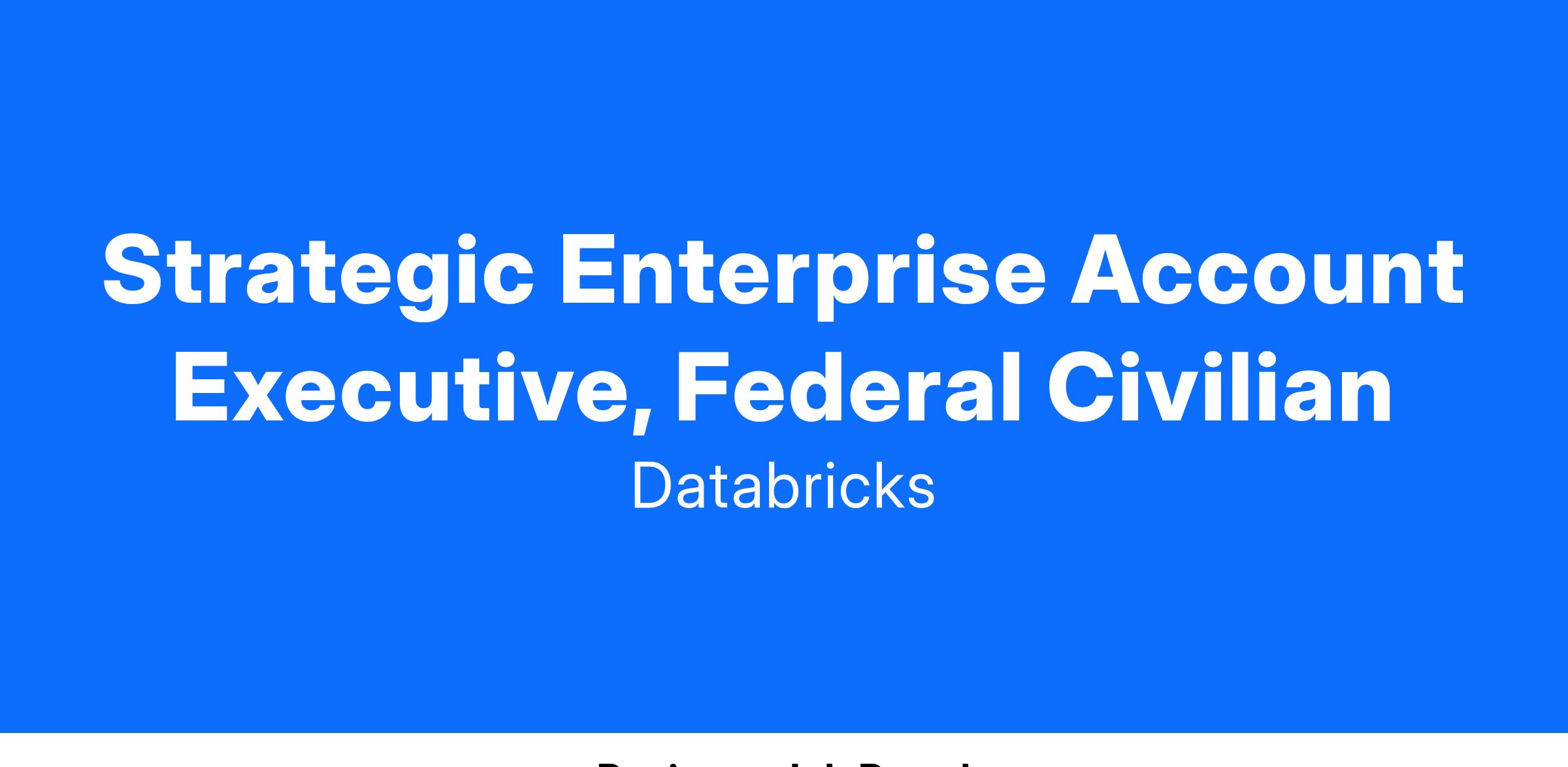 As a Strategic Enterprise Account Executive at Databricks, you will be responsible for driving sales of Databricks within this dedicated set of accounts within the Federal Civlian segment. As an experienced Account Executive, you know how to sell innovation and change through customer vision expansion and can drive deals forward to compress decision cycles. You love understanding a product in depth and are passionate about communicating its value to Public Sector clients. Always looking for new opportunities, you will be expected to net new accounts and expand current footprints. Along with the chance to close an exciting deal, we also offer accelerators above 100% quota attainment.