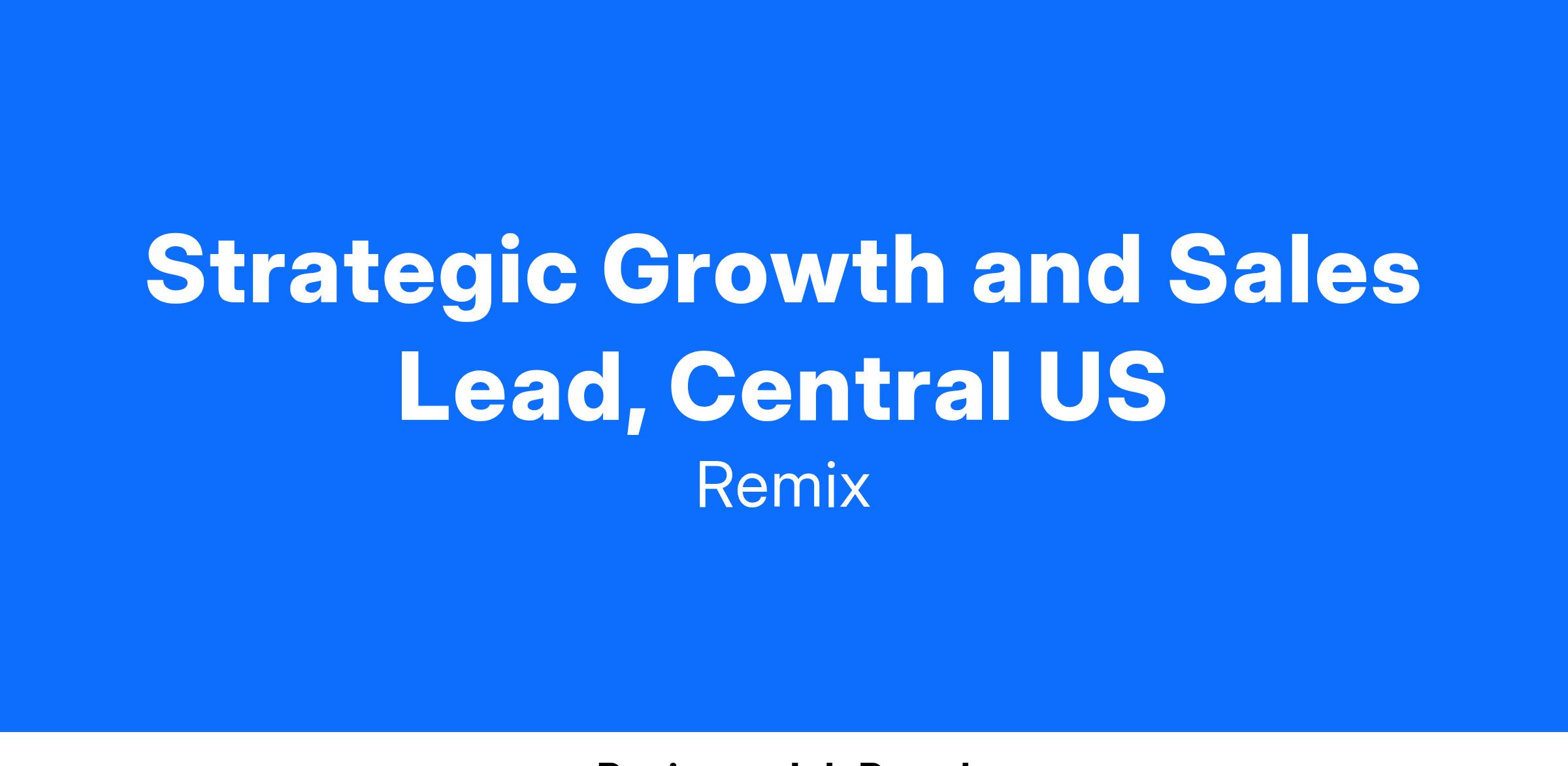 Strategic Growth and Sales Lead, Central US