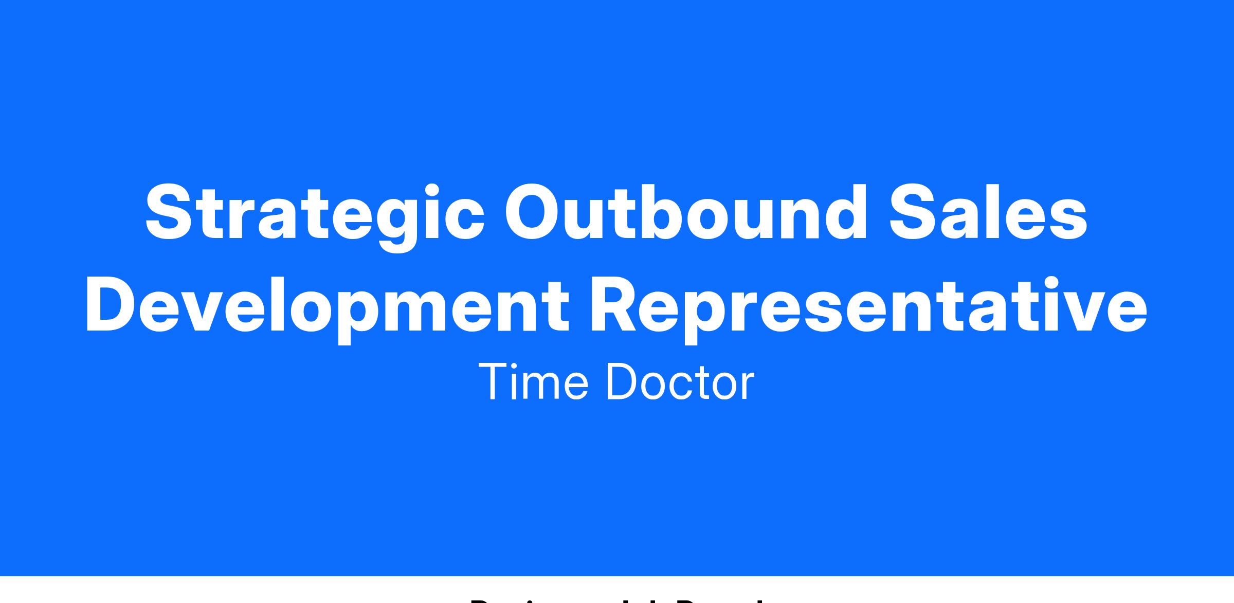 As a Strategic Outbound Sales Development Representative at Time Doctor, your primary responsibility is to prospect warm leads and create qualified opportunities for our Account Executive team. Reporting to the Sales Director, you will play a crucial role in helping Time Doctor sell to our upmarket customers by identifying potential opportunities, using experience, tools and prospecting abilities to build relationships and qualified pipeline.