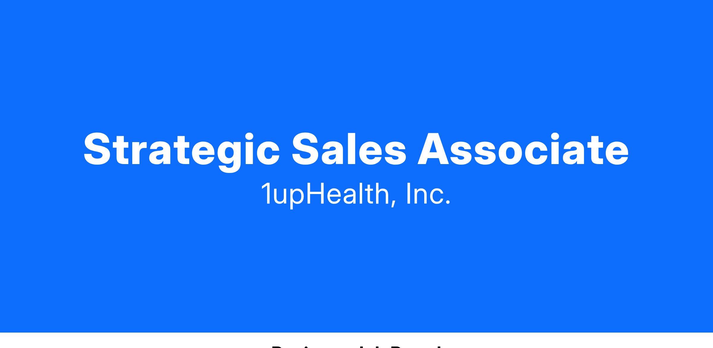 As a rapidly-growing, venture-backed startup, we are looking for a driven Strategic Sales Associate to help strategize, identify, engage, and qualify new business prospects. You will report to the VP of Sales and be a key member of 1upHealth’s growth engine.