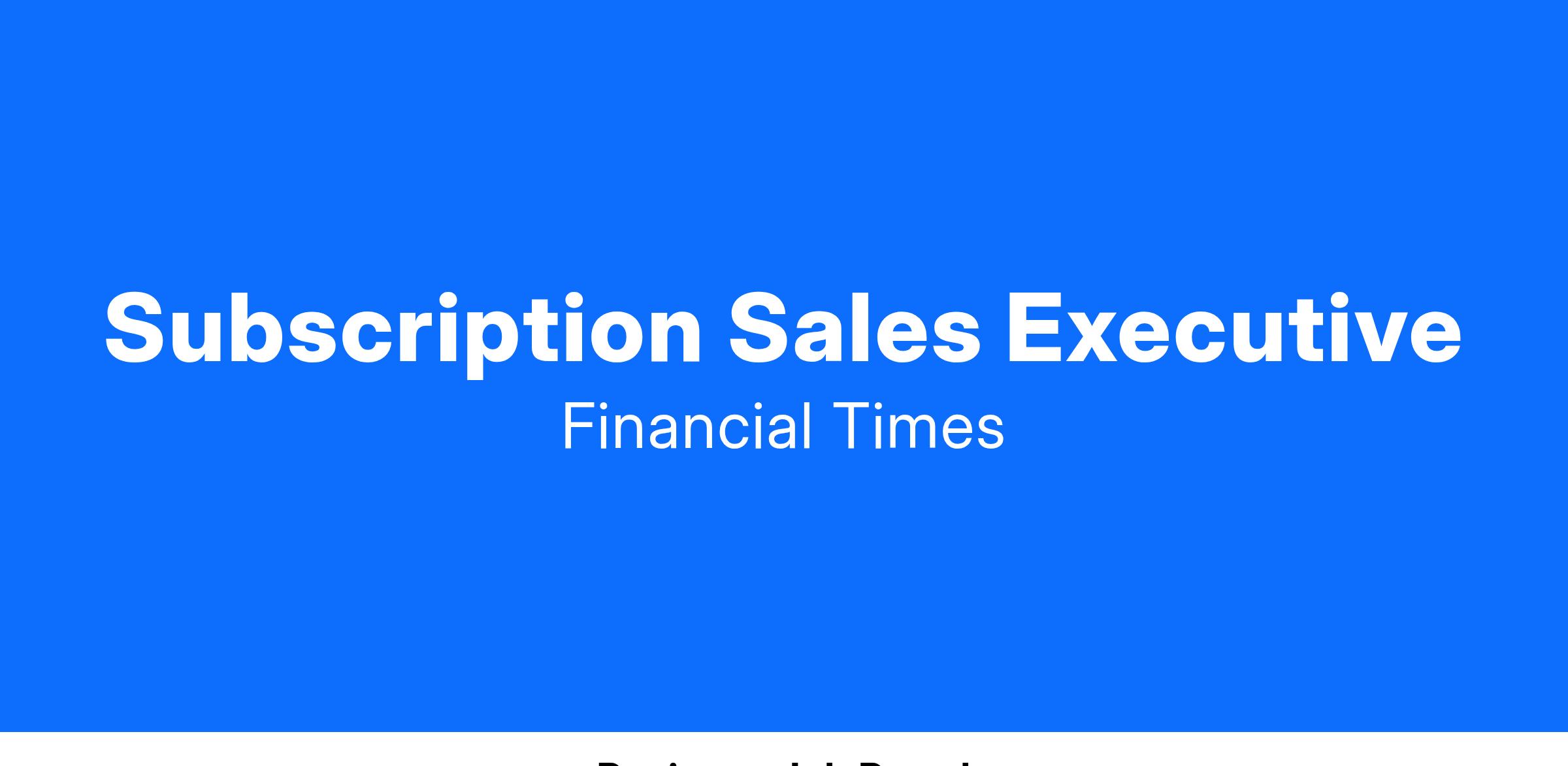 FT Specialist is a profitable and growing business unit within the iconic Financial Times Group. We deliver world class journalism, events, and marketing services for select industries through an extensive suite of products. Come join a growing team responsible for selling access to our unparalleled content. In this role, you regularly interface with C-suite decision makers across various financial sectors, negotiate prices and access levels, and should close 30 to 40 deals per year.
