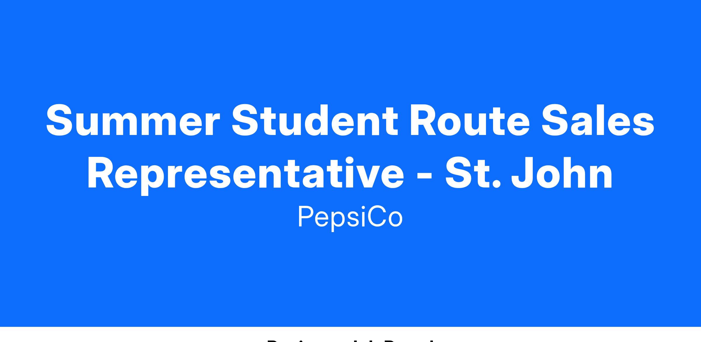 Summer Student Route Sales Representative - St. John