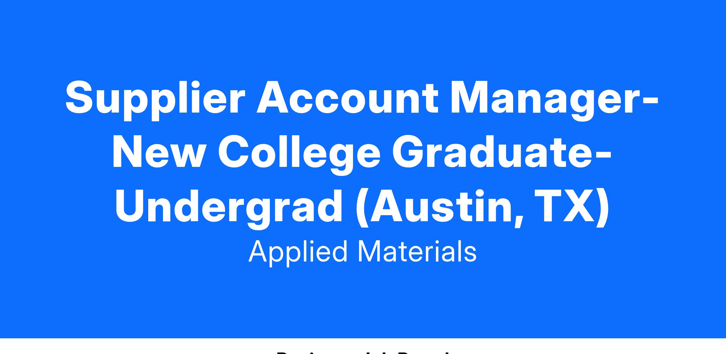 Supplier Account Managers are responsible for supplier selection, supplier management, commercial negotiations, and creating and executing commodity strategies.