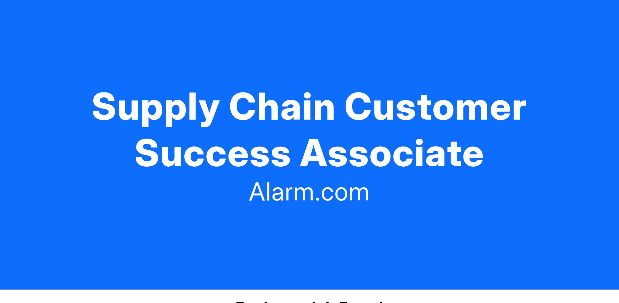 A rapidly growing, entrepreneurial technology company, Alarm.com is seeking a Customer Success Associate to join its Supply Chain team. As a fast, growing company, Alarm.com is looking for a tactical-and-strategic focused Associate with the ability to build strong internal and external relationships. This role will focus on supply chain fulfillment activities for our Partner base with the aim of improving Alarm.com’s overall customer experience.