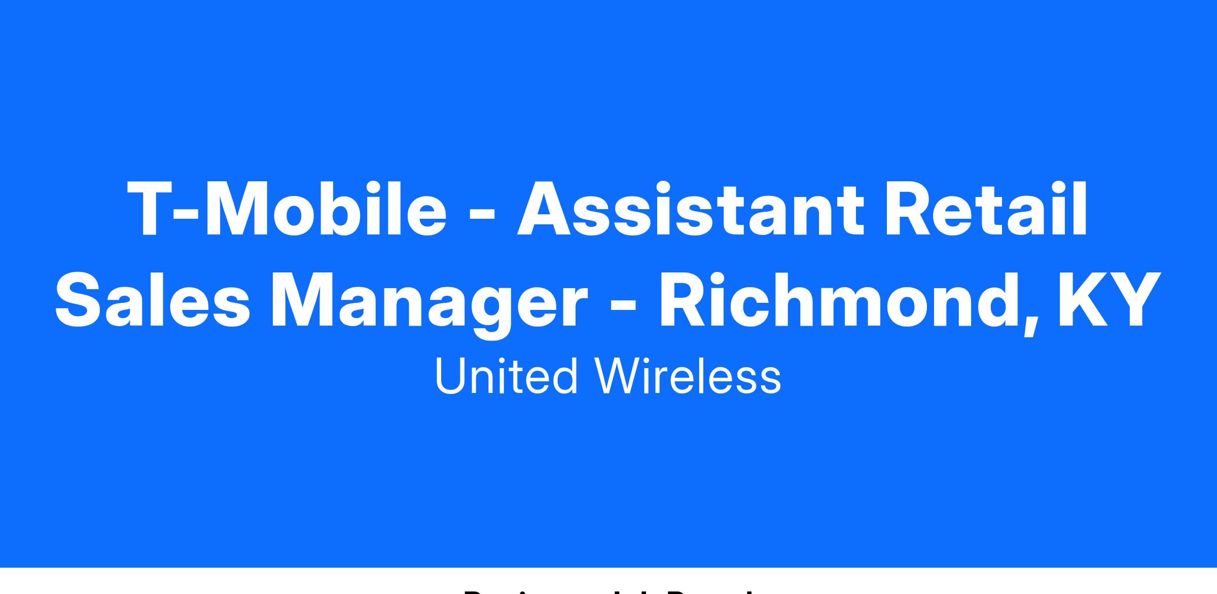 T-Mobile - Assistant Retail Sales Manager - Richmond, KY
