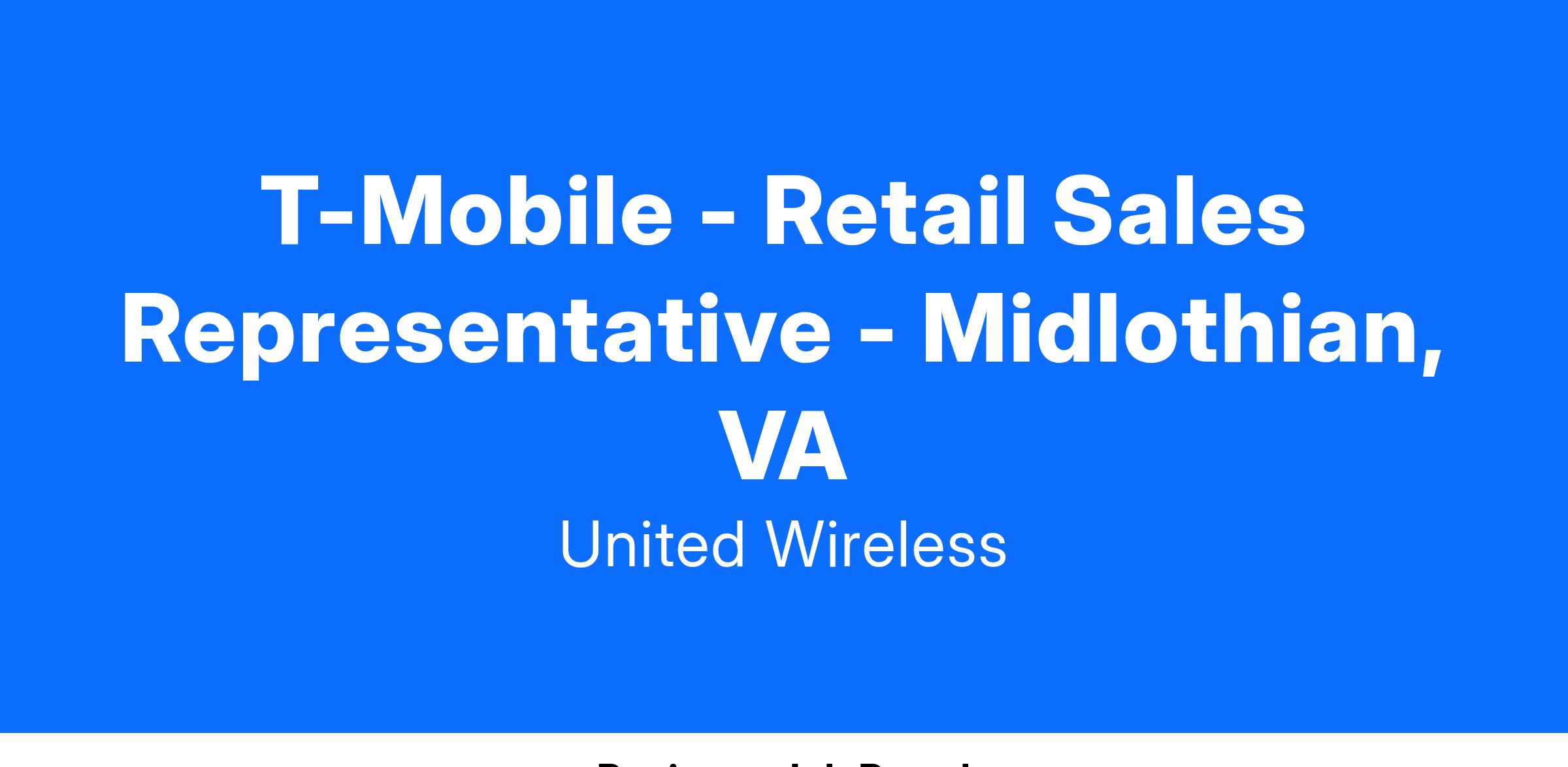 T-Mobile - Retail Sales Representative - Midlothian, VA