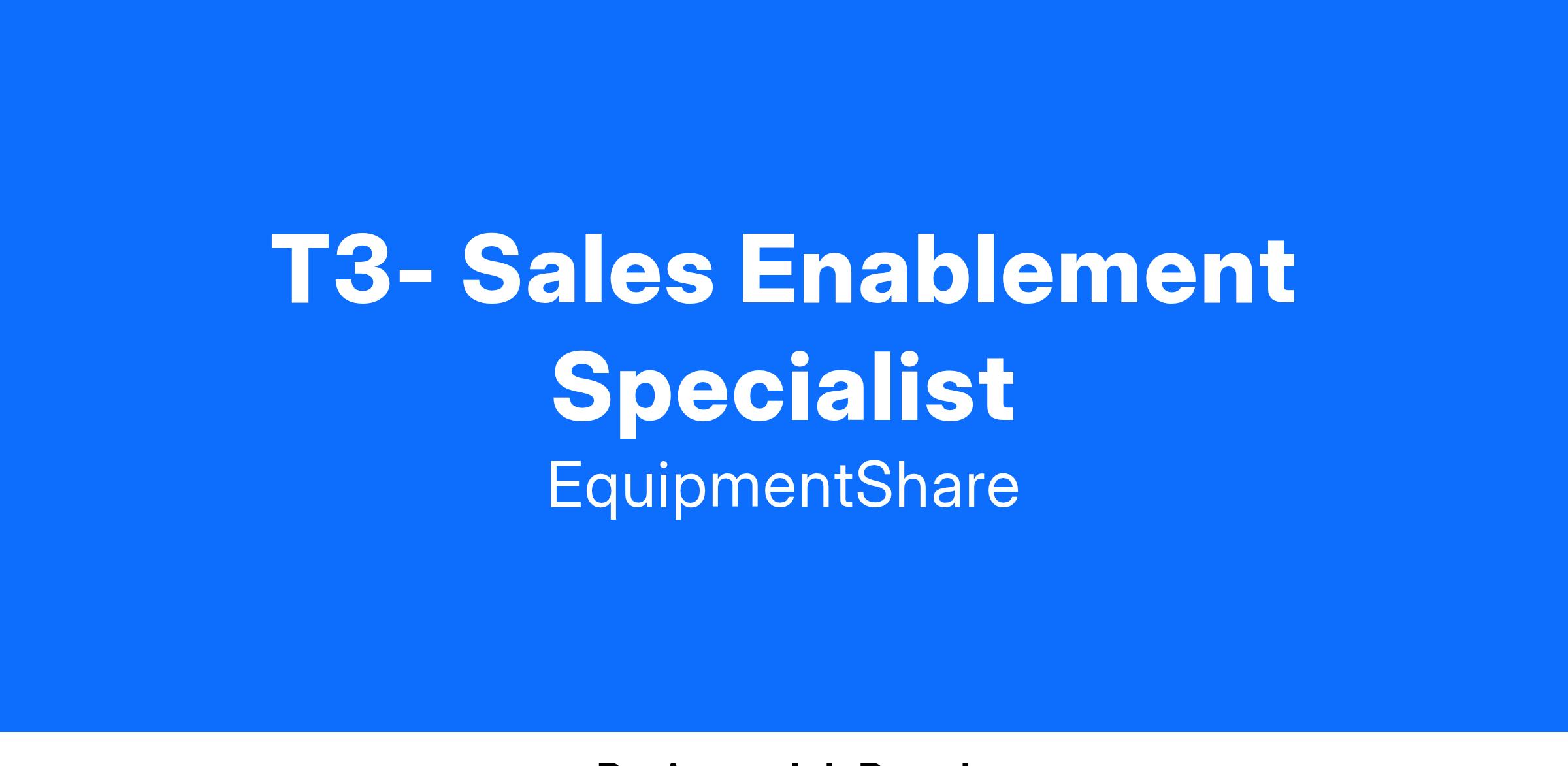 T3 Sales Enablement Specialist