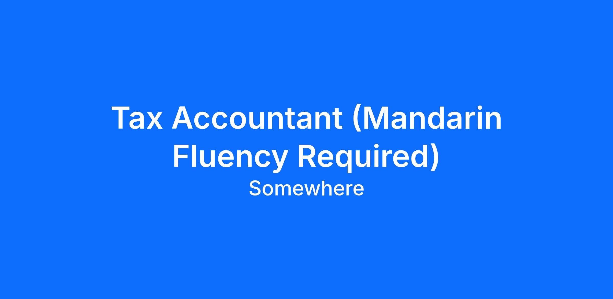 Tax Accountant (Mandarin Fluency Required)