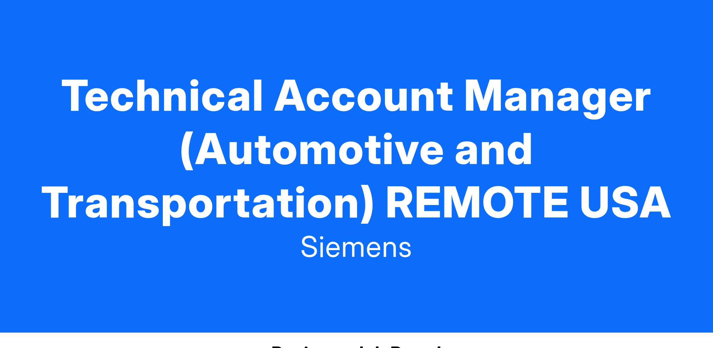 Position Overview - Technical Account Manager (Automotive & Transportation)