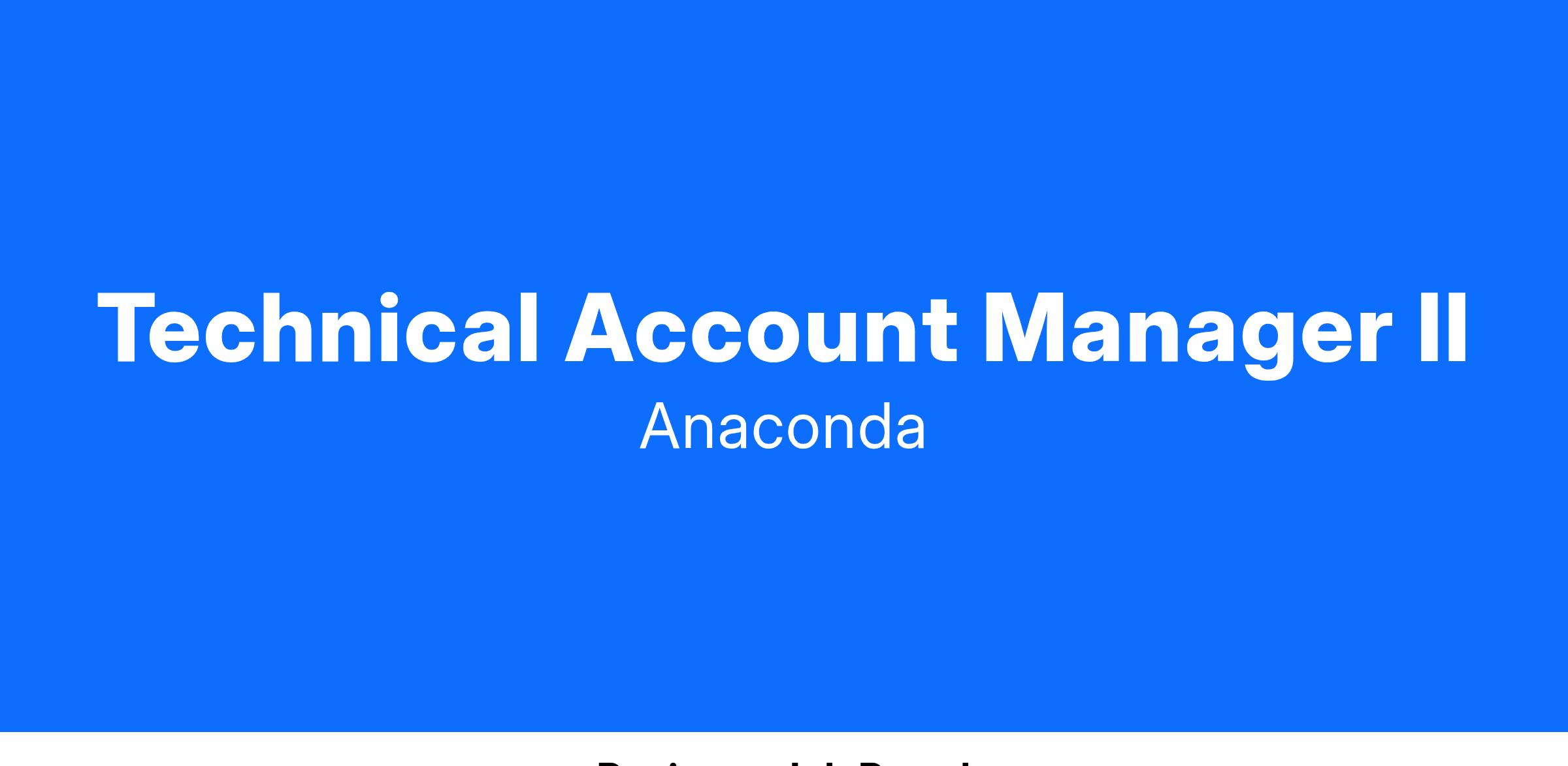 Anaconda is seeking a talented Technical Account Manager II to join our rapidly-growing company. This is an excellent opportunity for you to leverage your experience and skills and apply it to the world of data science, artificial intelligence, and machine learning.