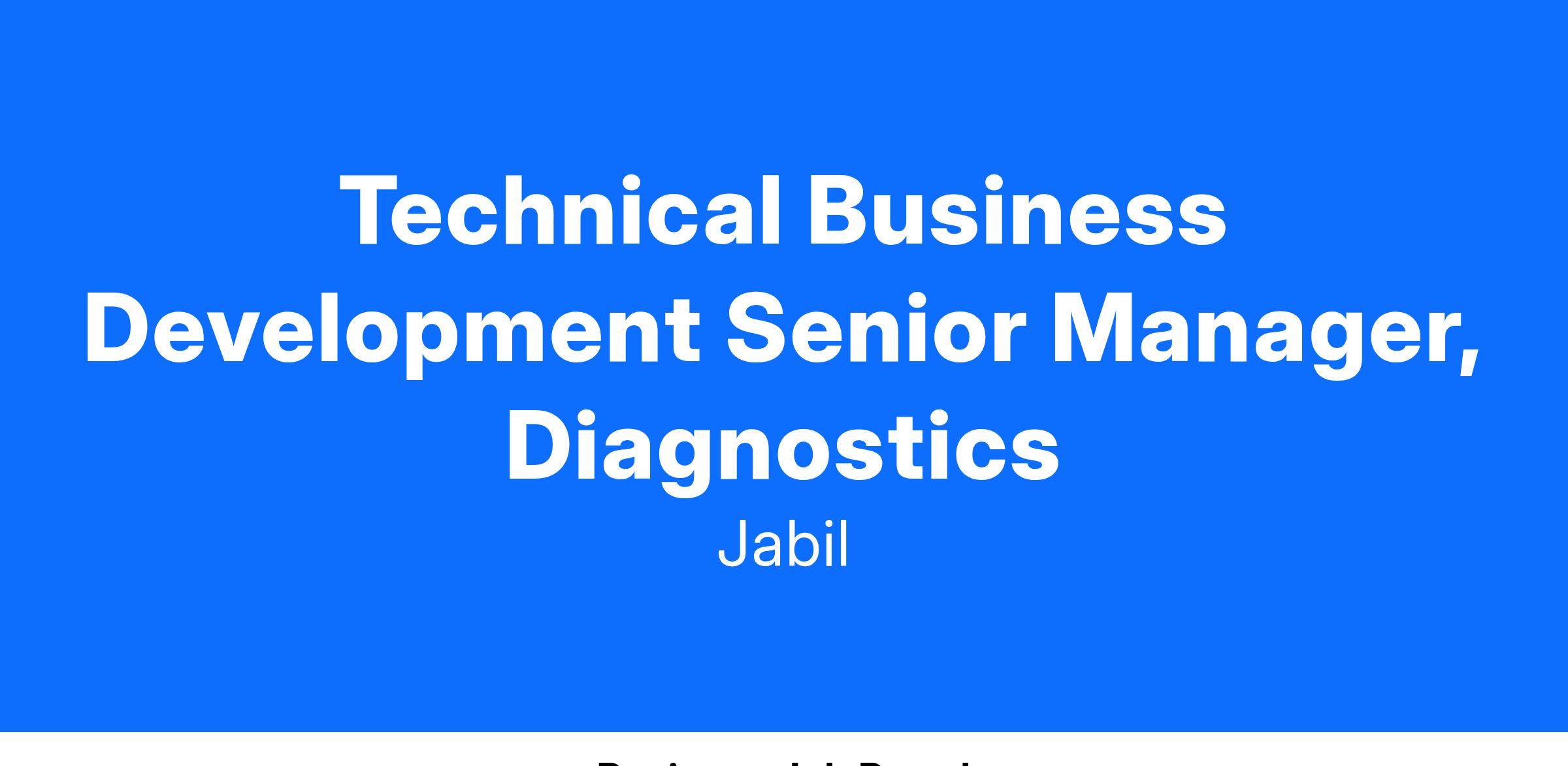 Technical Business Development Senior Manager, Diagnostics