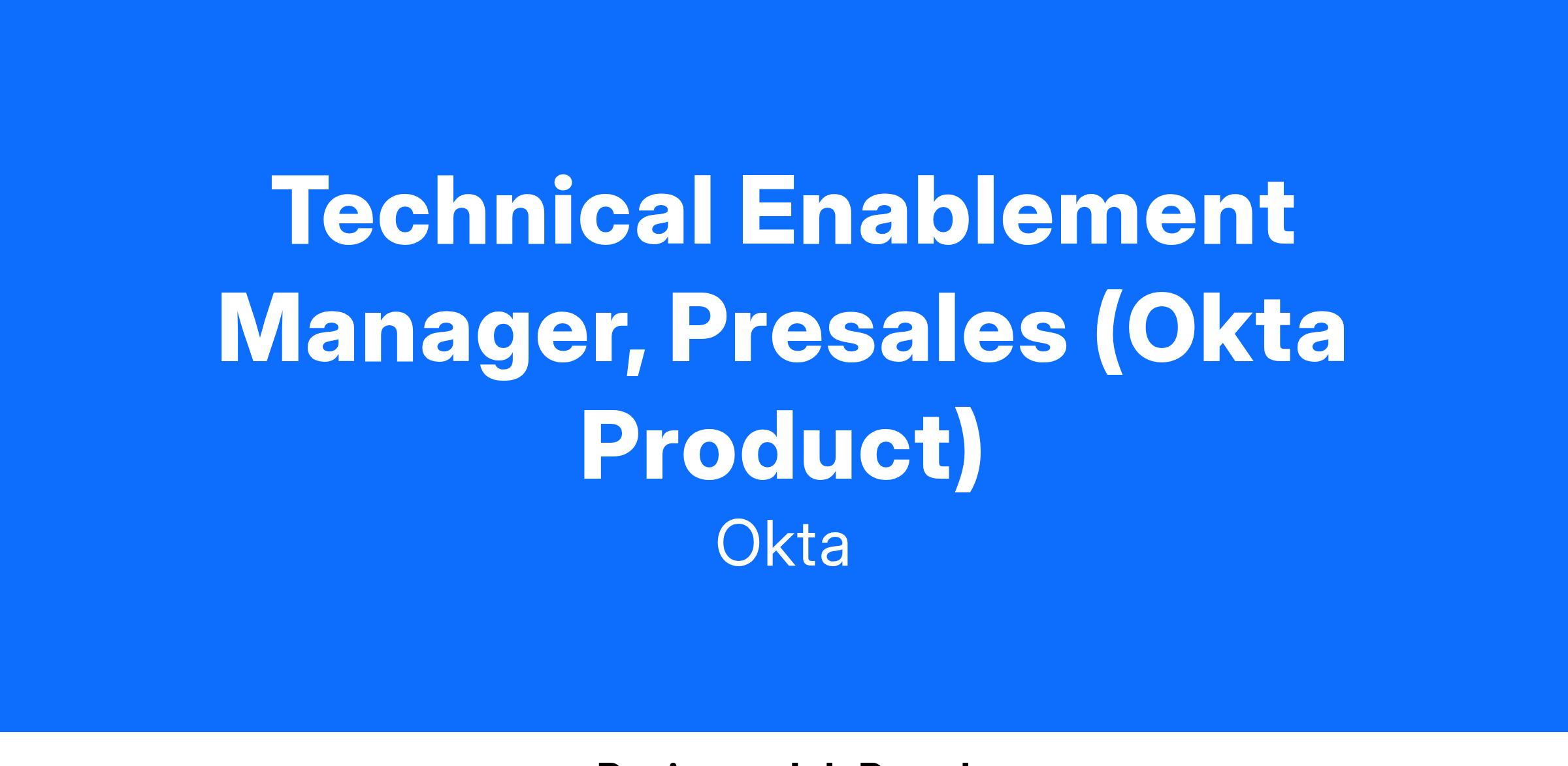 The Technical Enablement Manager, Presales (Okta Product) opportunity