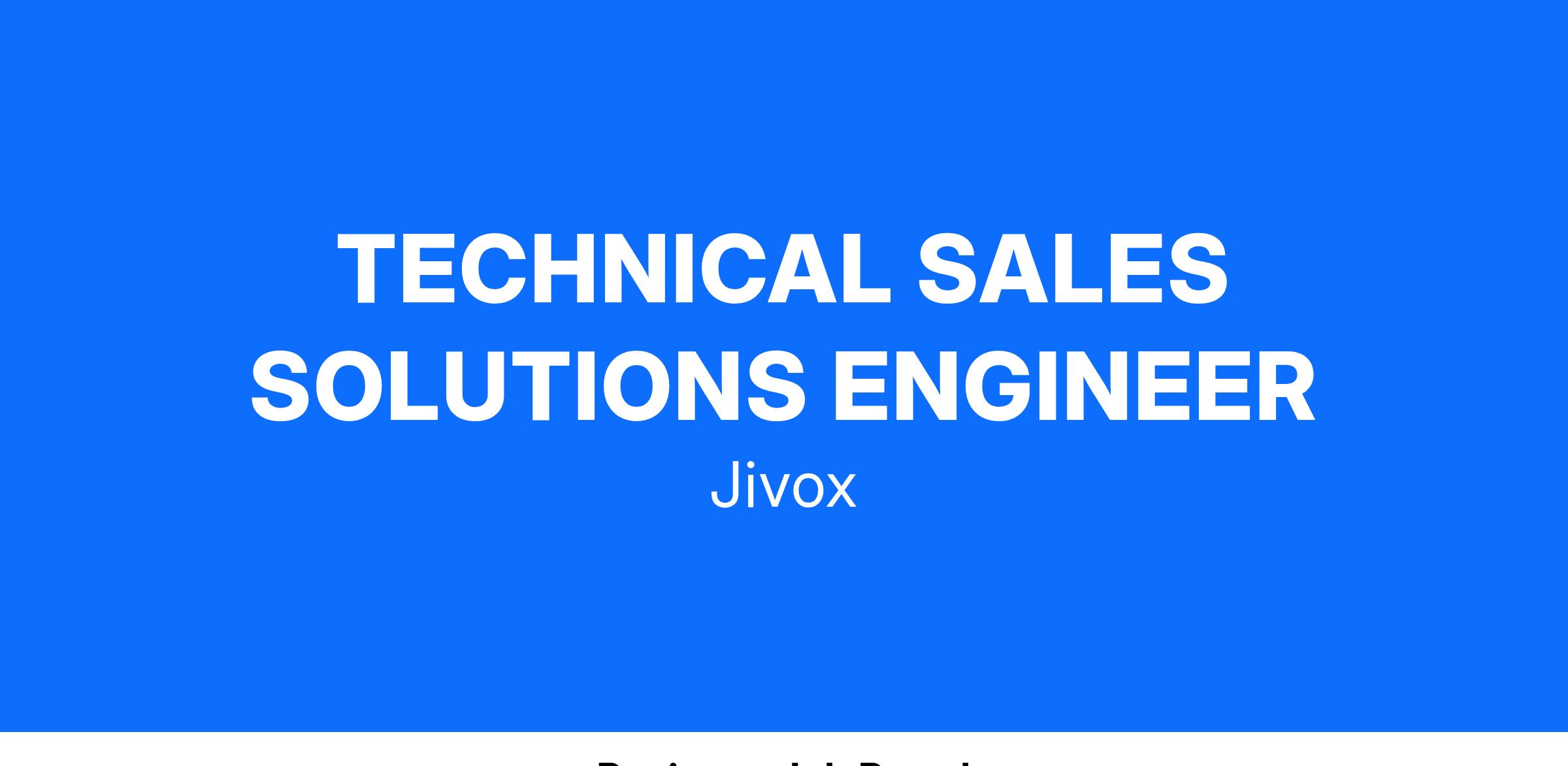 As a Sales Solutions Engineer, you have the opportunity to work with the worldβs largest brands. You will play an integral role in the Jivox Deal Team, partnering with our Sales team and Customer Success Directors to provide technical expertise to our prospects throughout the sales process. You will be responsible for leading sales presentations to demonstrate the platform and explain the key capabilities of JivoxIQ technology. You will engage with prospects directly to understand their requirements and present relevant JivoxIQ capabilities to address those needs. You may also help educate prospects and clients about best practices related to ways of working and platform implementation. As the technical expert of the deal team, you will possess in-depth product knowledge along with a strong understanding of ad serving, tracking and data management.