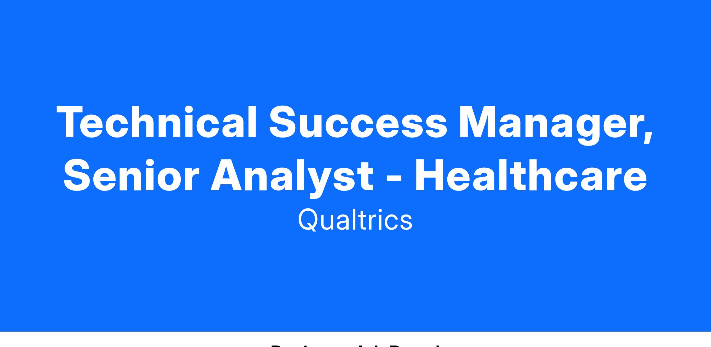 Technical Success Manager, Senior Analyst - Healthcare