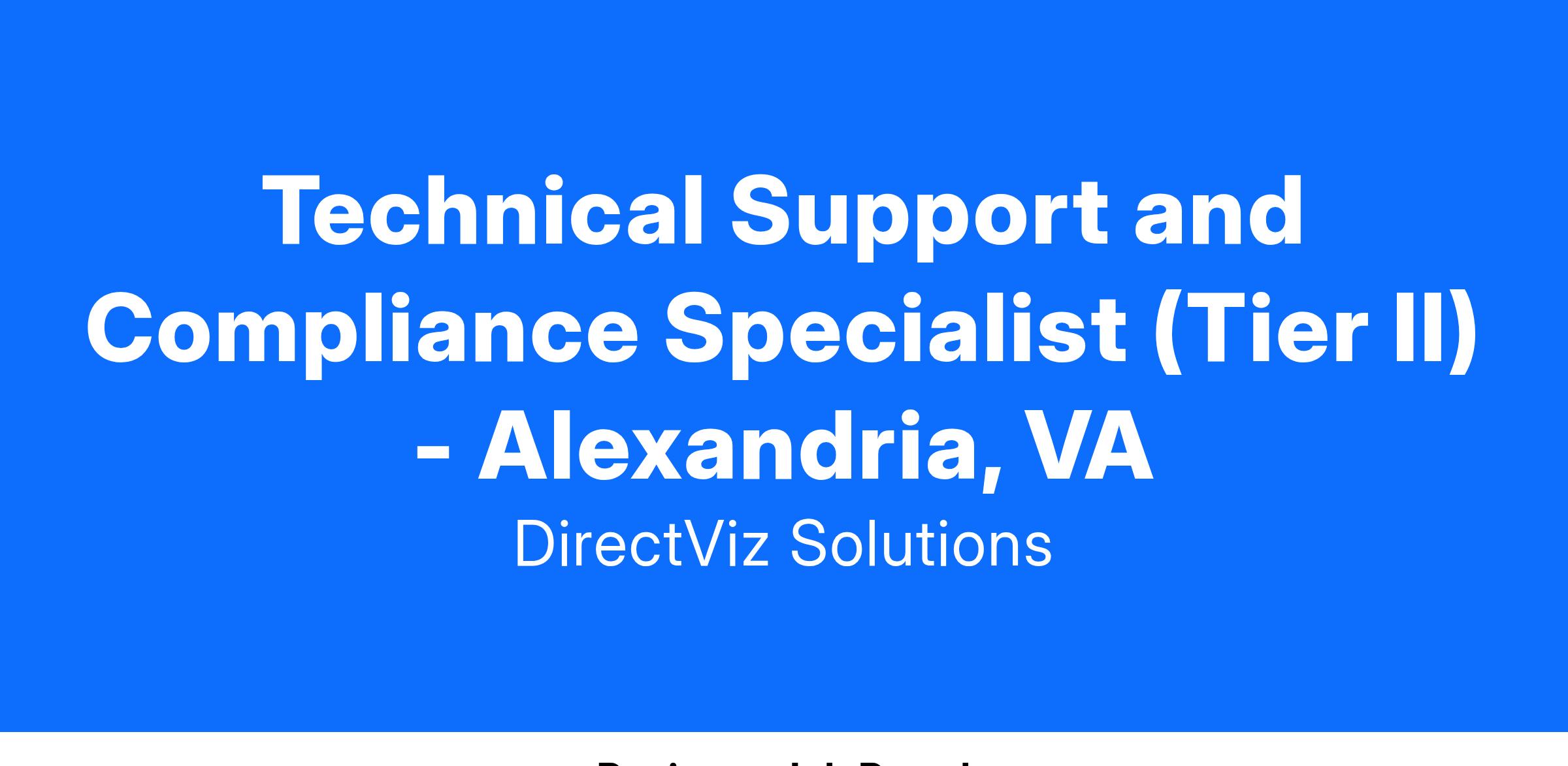 Technical Support and Compliance Specialist (Tier II) - Alexandria, VA
