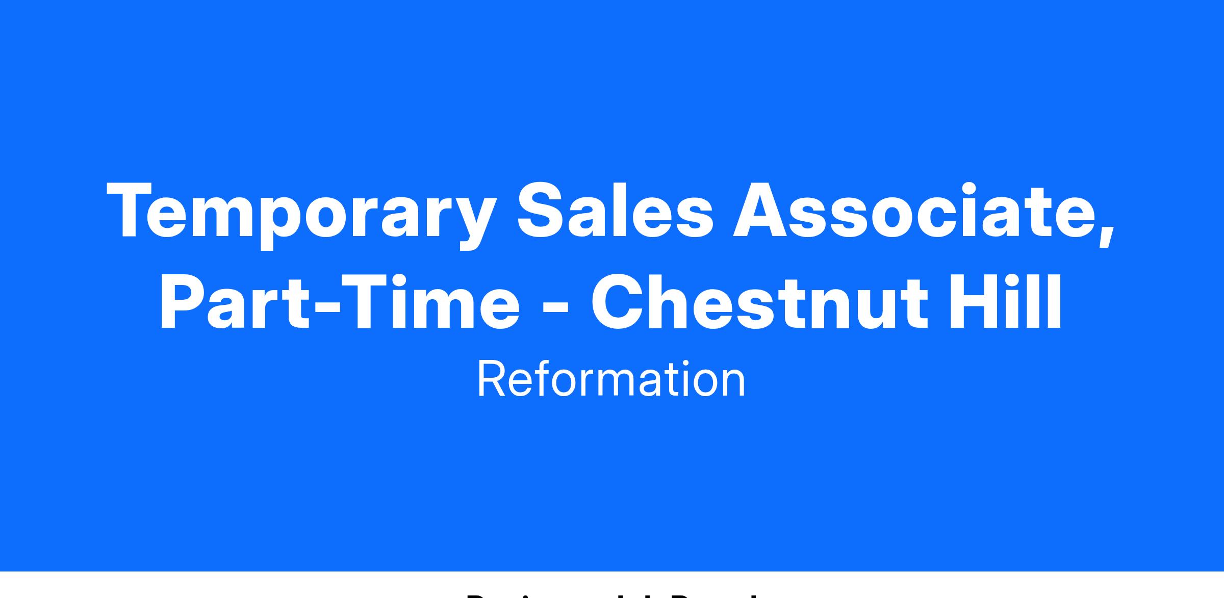 No position at Reformation is about the status quo, every team member is passionate about building a company rooted in excellence. Obsessed with customers and sustainability we use tech to create a unique interaction between our customers, employees, and the Reformation brand. The Associate will execute all efforts required to achieve individual sales goals.