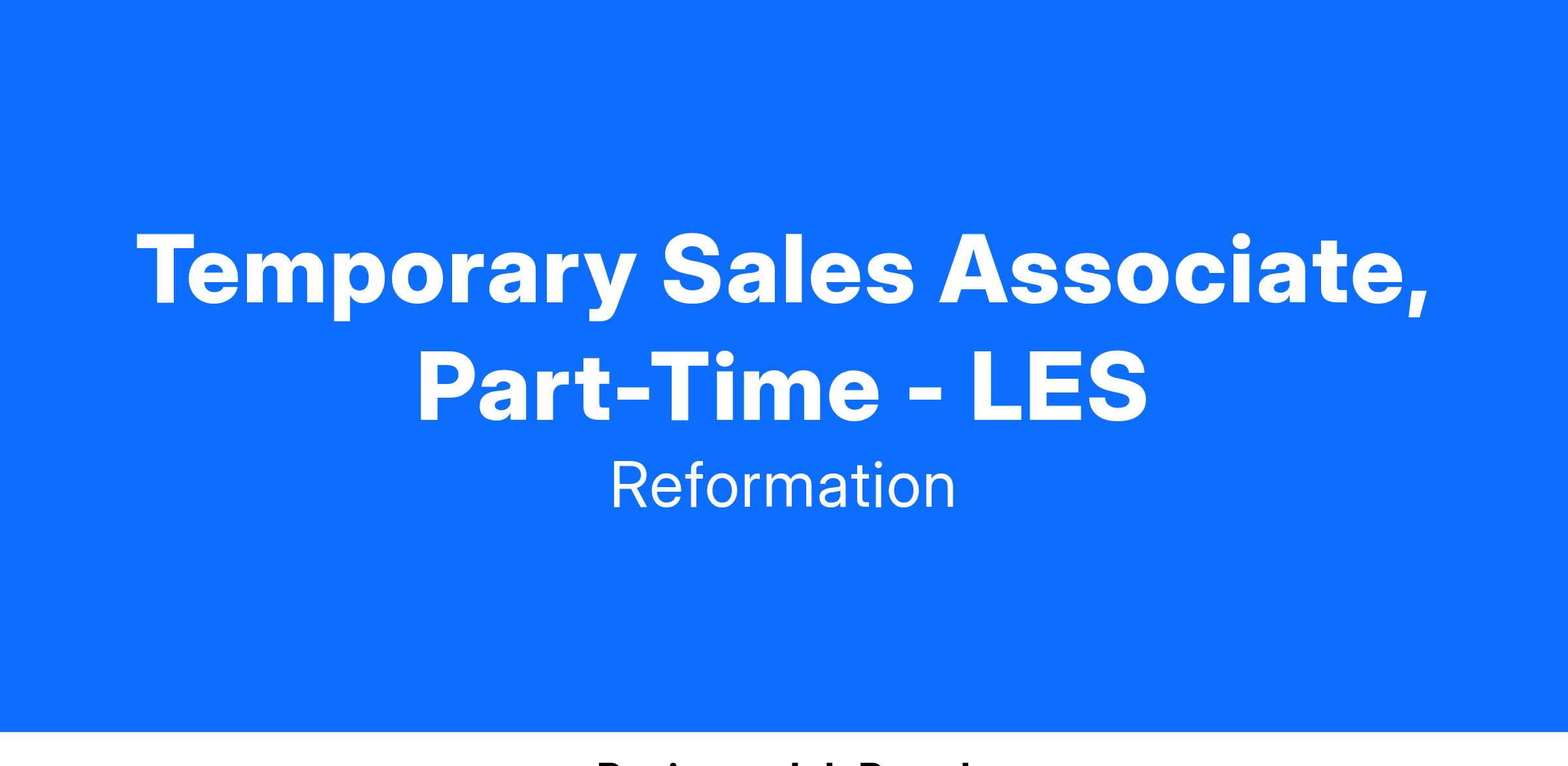No position at Reformation is about the status quo, every team member is passionate about building a company rooted in excellence. Obsessed with customers and sustainability we use tech to create a unique interaction between our customers, employees, and the Reformation brand. The Associate will execute all efforts required to achieve individual sales goals.