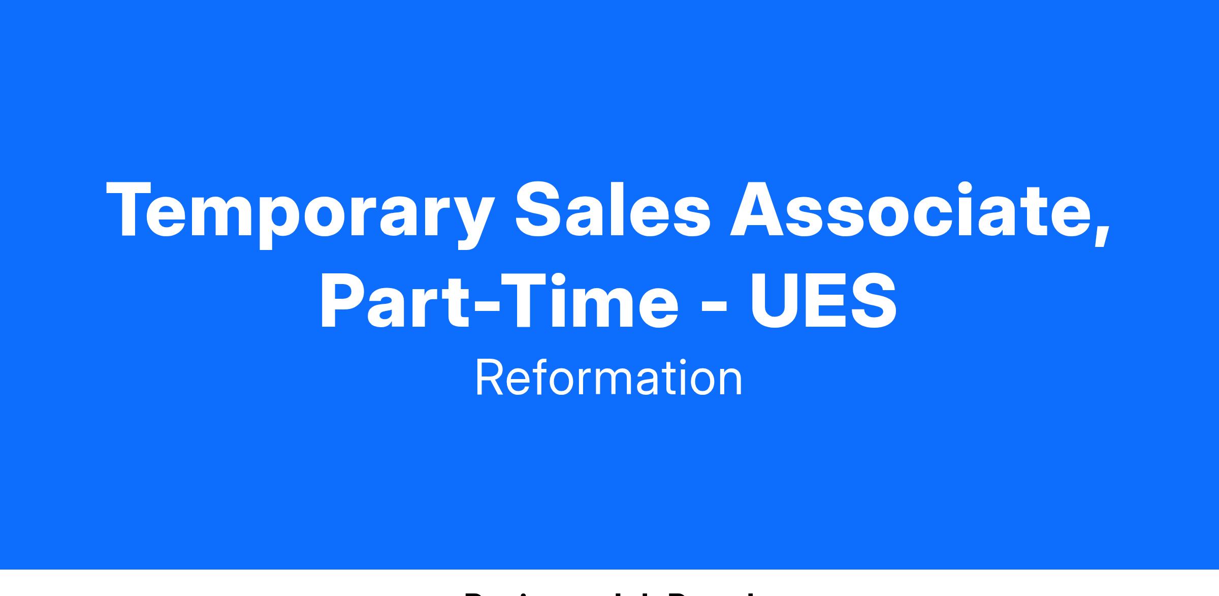 No position at Reformation is about the status quo, every team member is passionate about building a company rooted in excellence. Obsessed with customers and sustainability we use tech to create a unique interaction between our customers, employees, and the Reformation brand. The Associate will execute all efforts required to achieve individual sales goals.