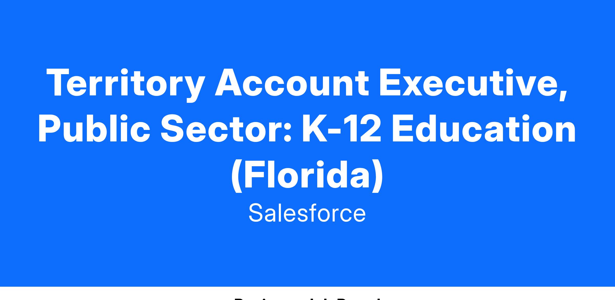This role covers K-12 of ALL sizes (0+ employees). You will have the opportunity to work in a fast paced team with various customers and receive personalized training and career opportunities. They build positive, trusted relationships with both key team members and c-suite decision makers within their patch, and become naturals at helping customers realize value from their Salesforce investments.