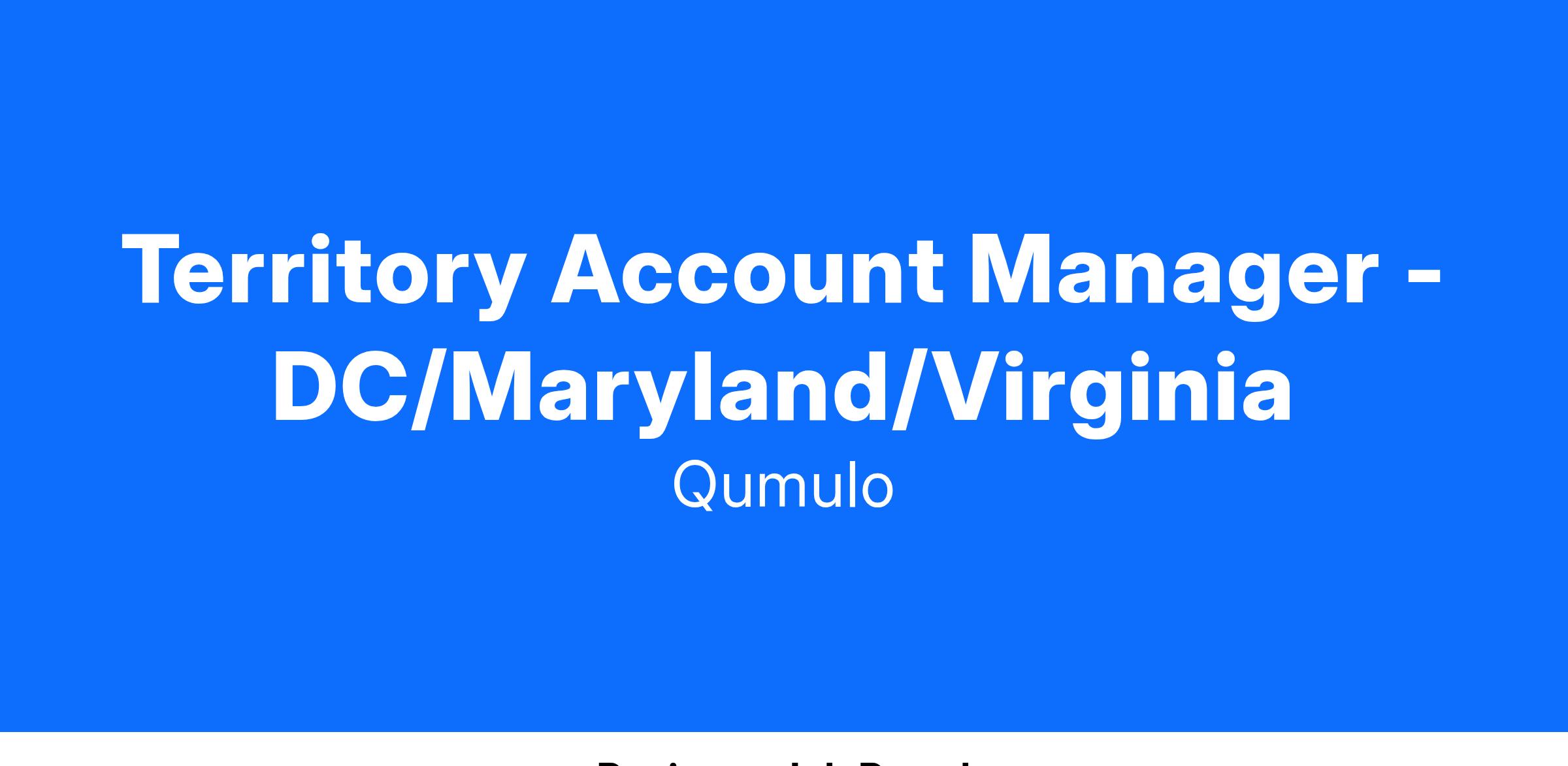 Are you a highly motivated go-getter and deal maker? As Qumulo's Territory Account Manager in the Washington DC, Maryland, Virginia (DMV) area you will grow Qumulo revenue and continue to build out your arsenal of customer connections. We're looking for someone who has a consistent track record of exceeding quotas and leading the business in software sales. Someone who possesses an equal measure of pragmatism and innovation, and is comfortable disrupting a customer’s thinking.