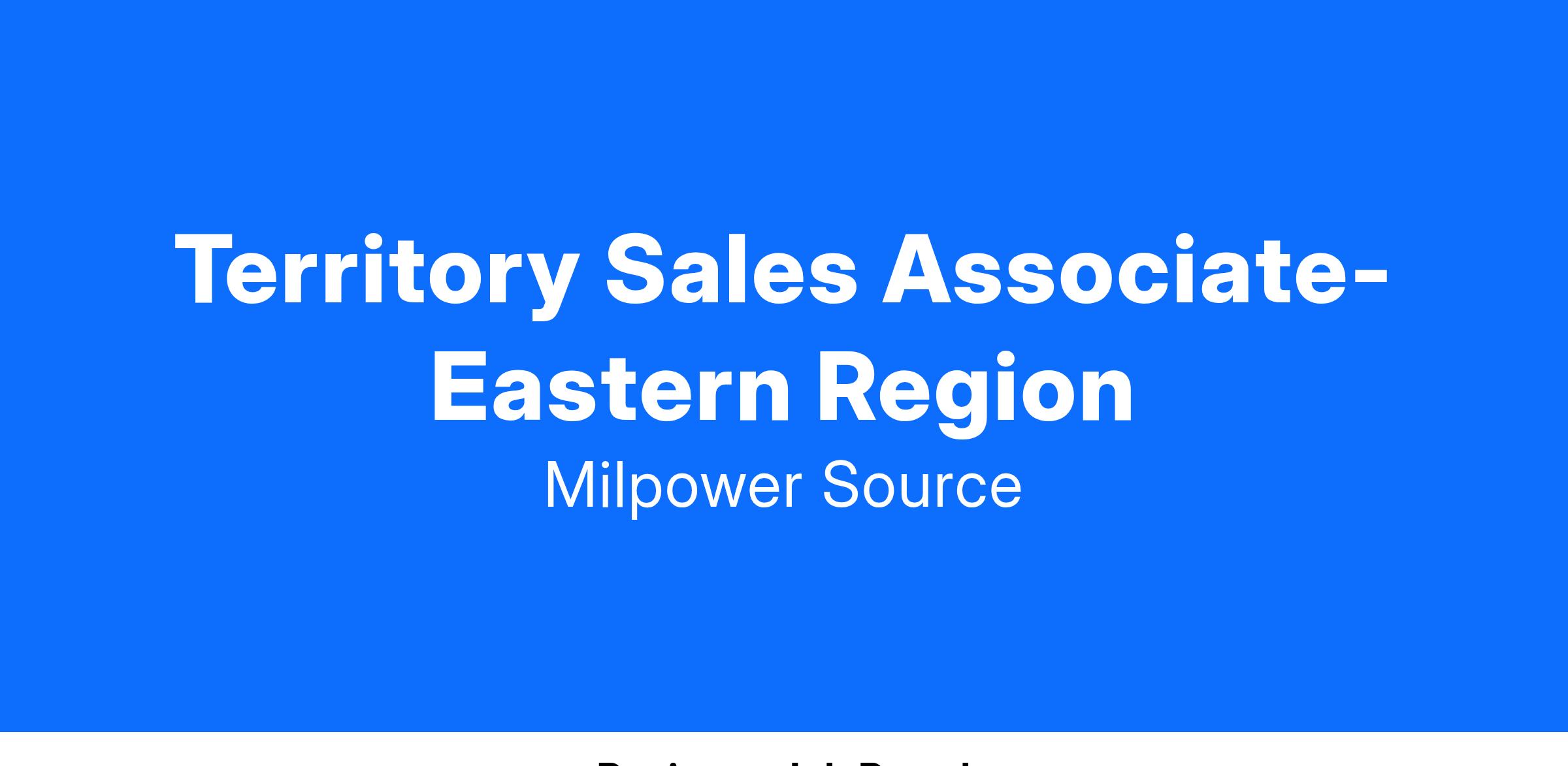 Milpower Source is looking for a Territory Sales Associate to support our Eastern region. This is a remote position. The ideal candidate is action-oriented and possesses the ability to connect with customers. We are looking for high energy, outgoing “hunters,” ready to help us continue growing our business. If you have the energy and ability to accelerate our sales strategy within important accounts, consider joining our growing team!