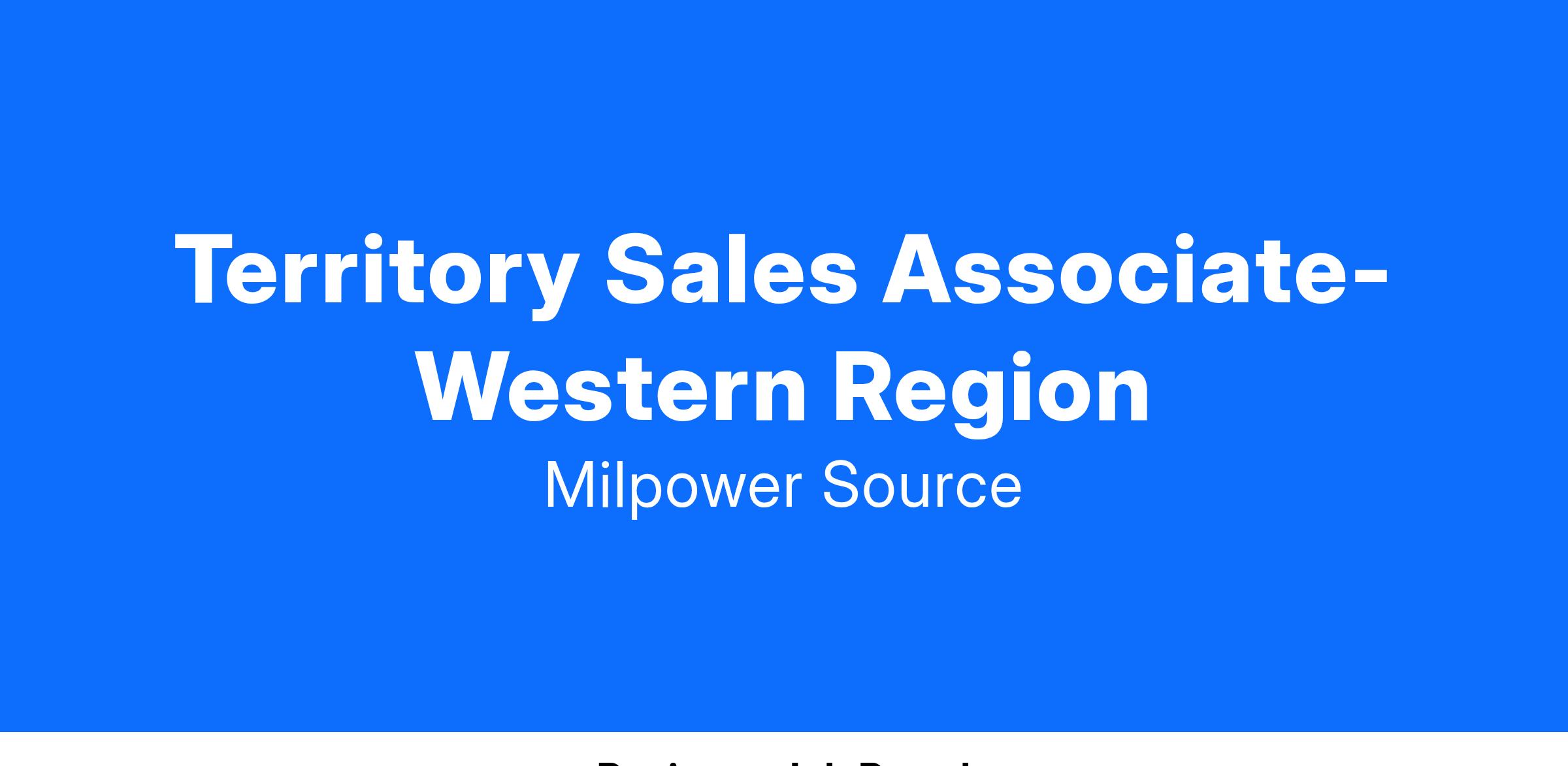 Milpower Source is looking for a Territory Sales Associate to support our Western region. This is a remote position. The ideal candidate is action-oriented and possesses the ability to connect with customers. We are looking for high energy, outgoing “hunters,” ready to help us continue growing our business. If you have the energy and ability to accelerate our sales strategy within important accounts, consider joining our growing team!