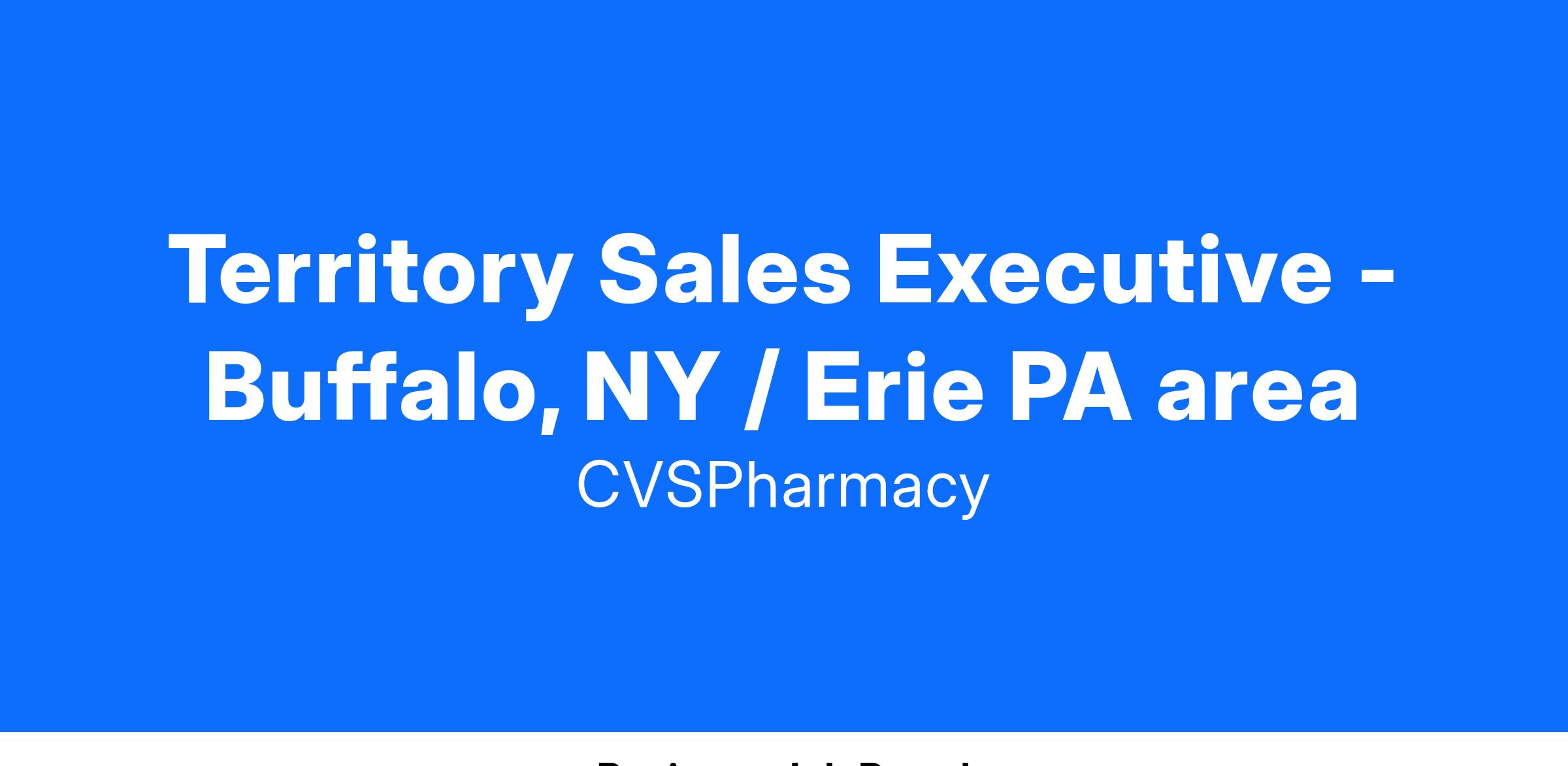 Your success is measured through percent to sales goal metrics, internal and external client satisfaction and success of aligned Inside Sales Representative(s). As a seasoned healthcare sales professional, you have the opportunity to use your personal influence with providers to grow the specialty prescription business. This is a highly visible role where you can own your success and play a key role in driving CVS Specialty’s business forward into the future! Candidates should be flexible for travel up to 50% as this is a road warrior position with significant windshield time. The territory mainly covers the Buffalo and Amherst, NY area reaching into northwestern Pennsylvania that includes (Erie, Dubois, Natrona Heights, Punxsutawney, Meadville and Butler). The candidate must reside within the territory and must be willing to travel overnight as needed.