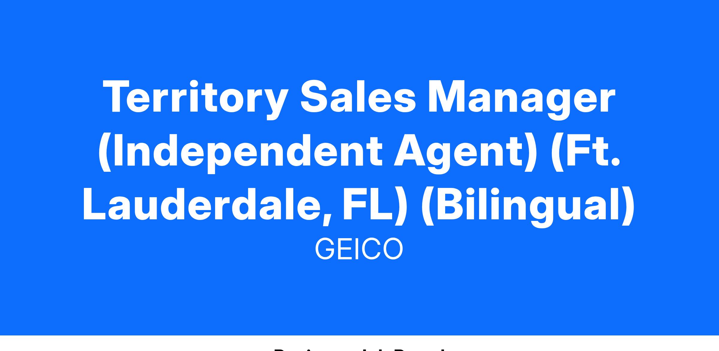 We are seeking a Territory Sales Manager position who will be responsible for growth of agency relationships to increase profit of GEICO and GEICO-affiliated products within an assigned area of responsibility. OVERSEES the development and execution of policies that cater to increasing agency relationships.